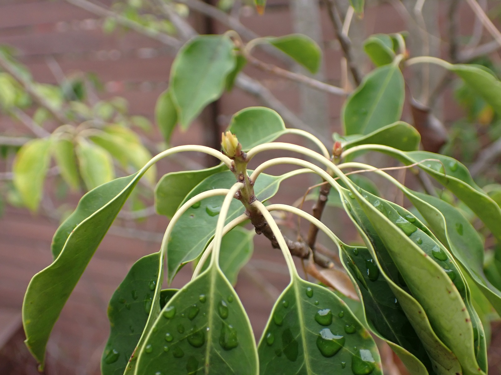 2026/04/07 実験#3 2026/04/07植物クチナシasahama どうやら失敗 実験開始から2日目にして、早くもクチナシの枝に皺が寄ってきた(左画像).葉も下がってきている.やはりと言うか、どうやら切り口をボンドで塞ぐと水揚げが困難になる模様.そこで、ボンドの箇所を切り落として再び水挿しにしてみる(右画像). するとどうだろう.夜にもなると枝にはハリが戻り、葉も上向きに戻った.まあそれはそうか.