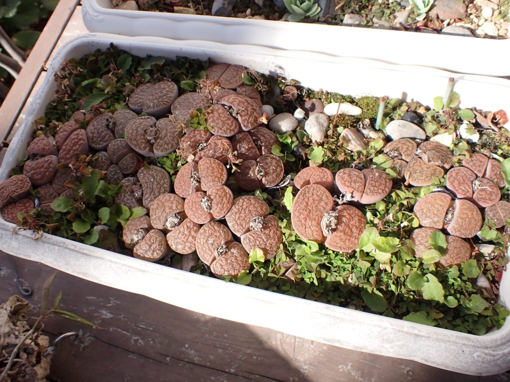 2026/03/08 リトープス・イワレンゲ 2026/03/08庭、植物イワレンゲ、リトープス、多肉植物asahama リトープス 荒玉の方は現在3株生き残っている.まだ脱皮の兆候はない. 紫勲もまだ脱皮の兆候はない. イワレンゲ プランターに植え付けた方は5株とも無事.更に、一昨年の冬に散布されて2冬を越したと思われる大量の実生がリトープスのプランターで発生.また摘み取らねば. ちなみにイワレンゲは庭にも少々根付いている.