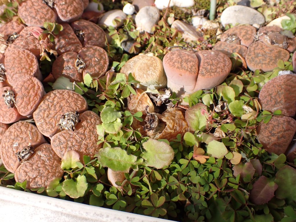 2026/03/28 リトープス他 2026/03/28庭、昆虫ヤマトシジミ、リトープスasahama 荒玉 3株は今の所生き残っている. 紫勲 一つの株がとろけた.どんな季節でも発生するらしい.最初に買った株と思われ、少し残念. ヤマトシジミ イワレンゲの枯葉の裏で蛹になる模様.
