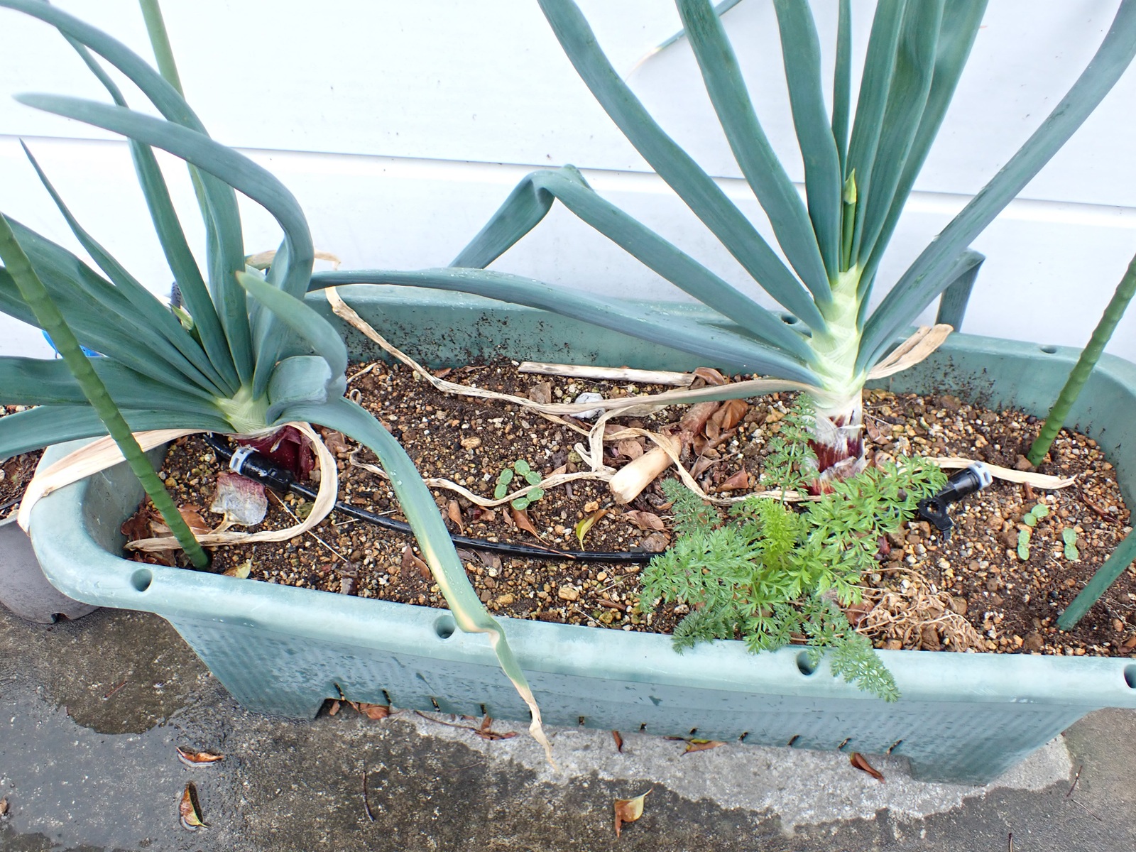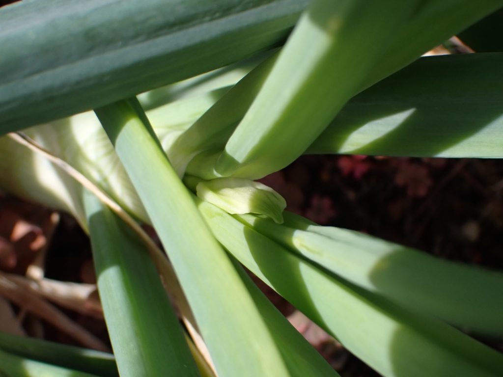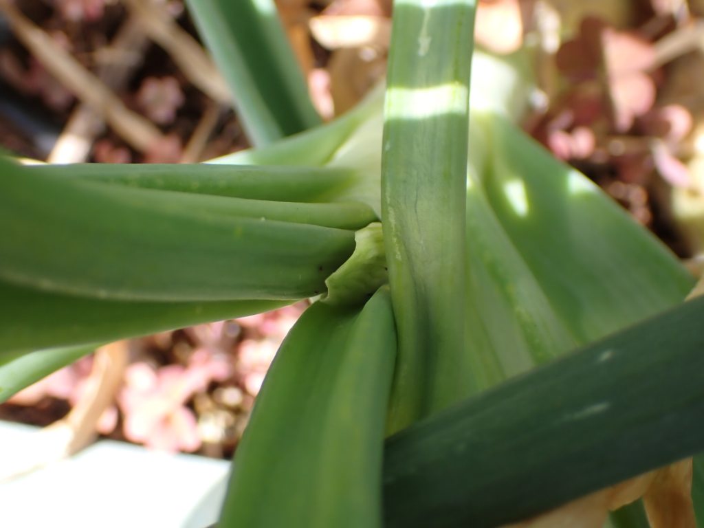 2026/04/06 玉ねぎ近況 2026/04/06会社、植物玉ねぎasahama 泉州中高黄 先週抽苔していたこの花茎、切り取って食べた.その訳は・・・ 同じ株の分けつから新たに複数の抽苔が確認された為.他の株の開花をできるだけ待つ方が得策と考えた.