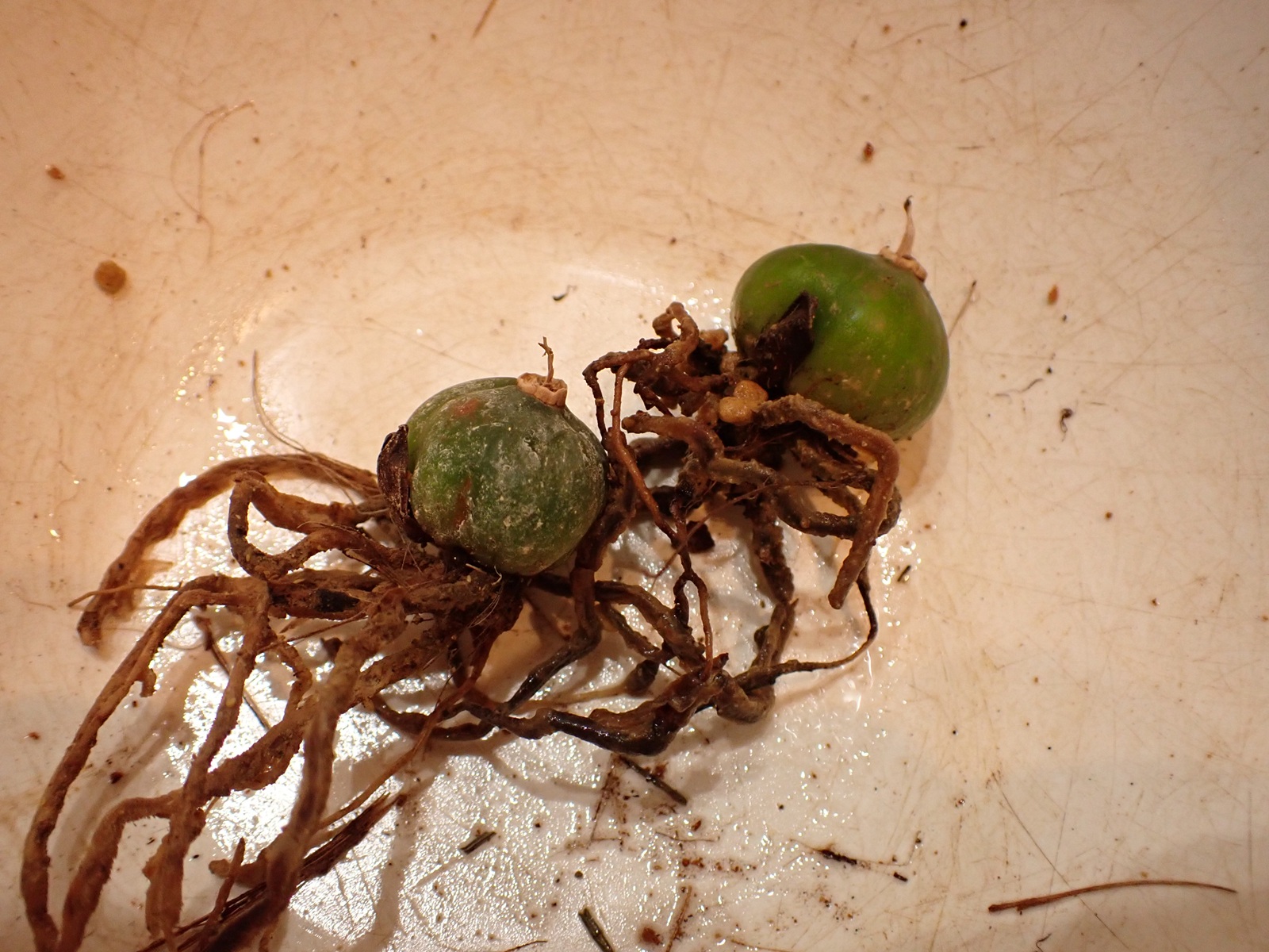 2026/02/08 Coelogyne usitana 植え付け 2026/02/08植物ランasahama コルク着け+植え込み 昨日購入したCoelogyne usitanaを早速植え付ける.まずは根の様子を確認. 生きている根は少々ある模様. 別で購入していたコルク板にあてがってみる.こんな感じかな? トリカルネットと木ねじを使って固定.良い角度で着ける為、コルクの欠片を挟み込む. 株を着けたコルクを5号鉢にセットして、用土を流し込む(バーク2:鹿沼1、マグァンプ少々). たっぷり水を通して植え付け完了.