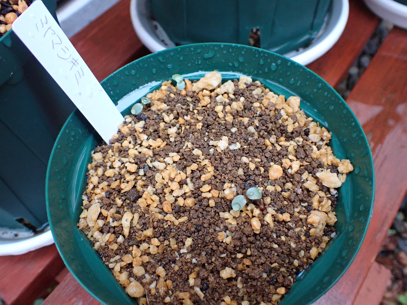 2026/03/28 ミヤマシキミ 2026/03/28庭、植物ミヤマシキミasahama 違う草か 確か、2粒ずつしか蒔いていないのに3つも出ている.周囲の地面を見渡すと、そっくりな双葉がずらりと見つかった.さてはミヤマシキミではないか.