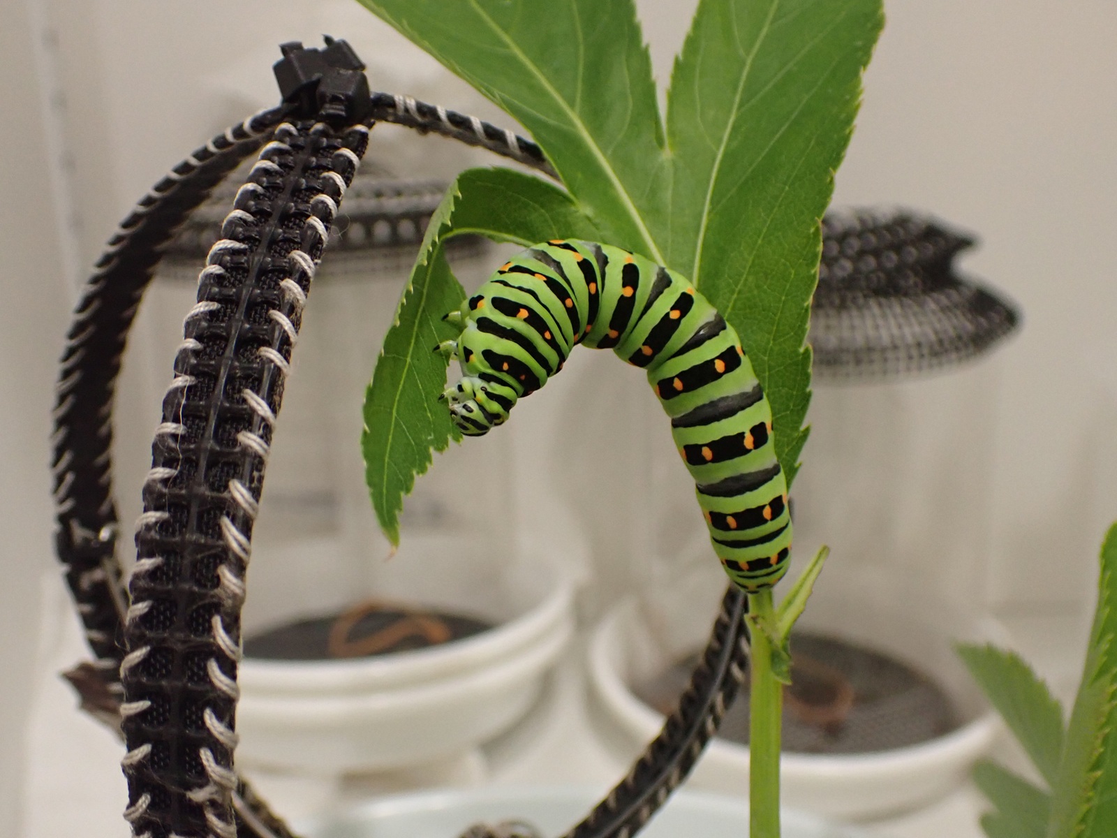 アシタバをもりもり.ぱつぱつに育った.終齢へ脱皮してから4日目.あと3日以内に上がりかな?