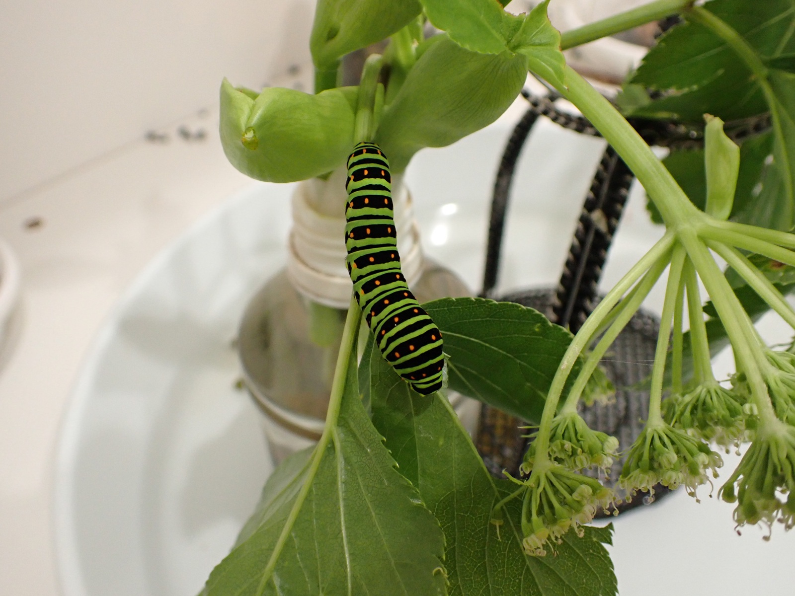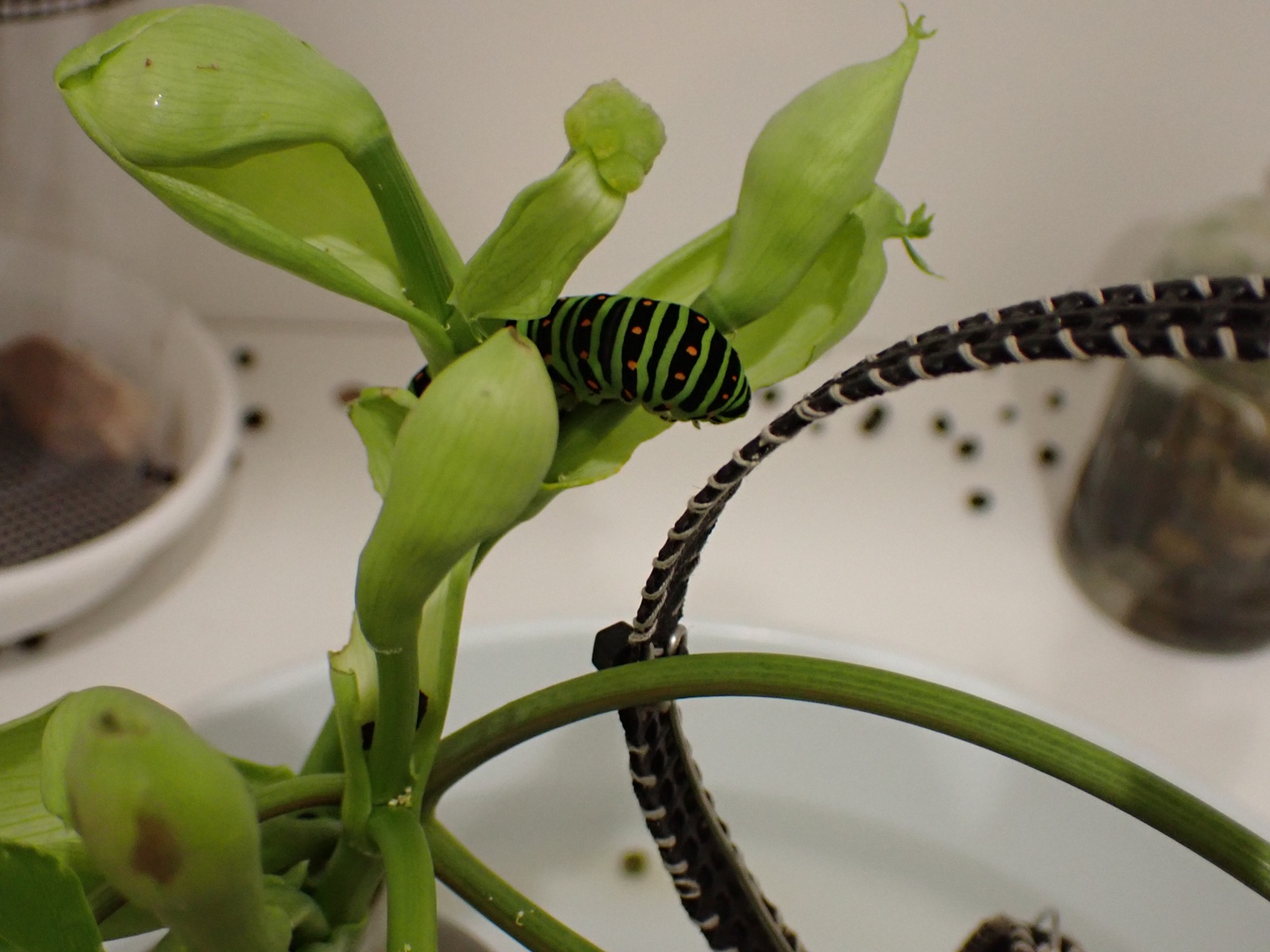 2025/09/30 キアゲハ成長中 2025/09/30昆虫キアゲハasahama 終齢 小 大 今朝の時点では、大きい個体は5.5cm程、小さい個体は5cm弱であった.蛹化に備えて蛹化器・水盤を用意した.
