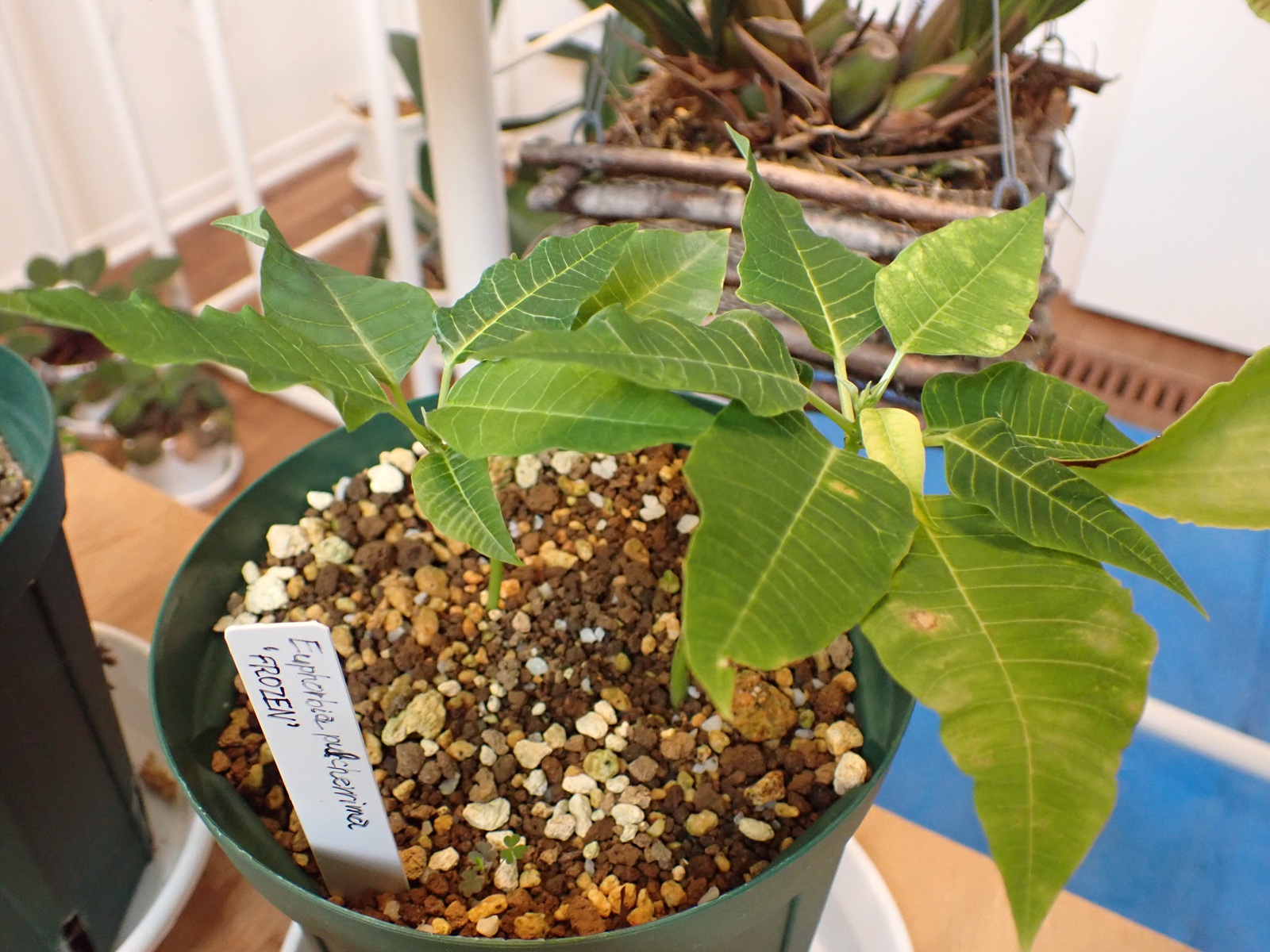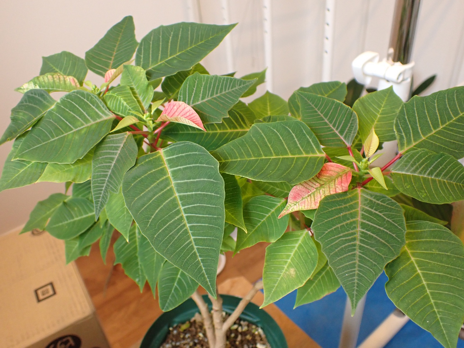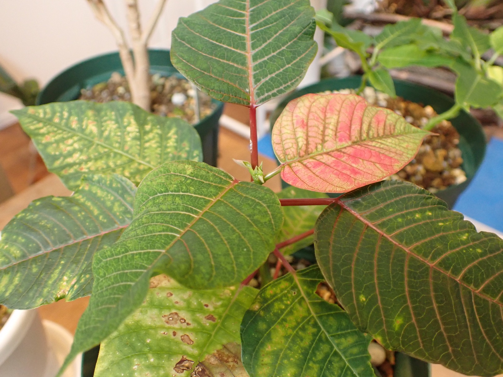 2025/11/13 ポインセチア状況 2025/11/13植物ポインセチアasahama 開花準備中 レッド ドラゴン プレミアム レッド フローズン レッド ドラゴンはいい感じだけど、プレミアムレッドとフローズンは先端の展開が遅い気がする.大丈夫かな?