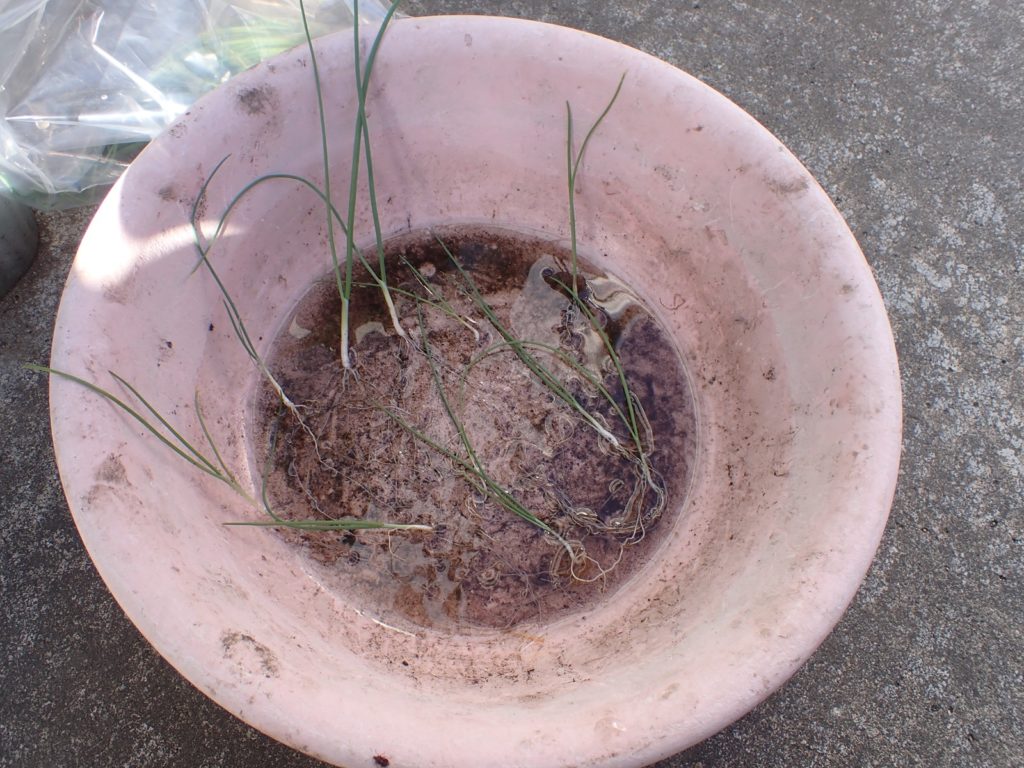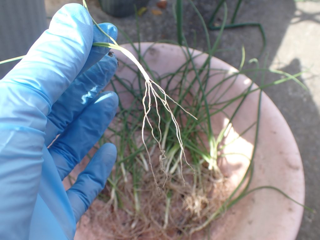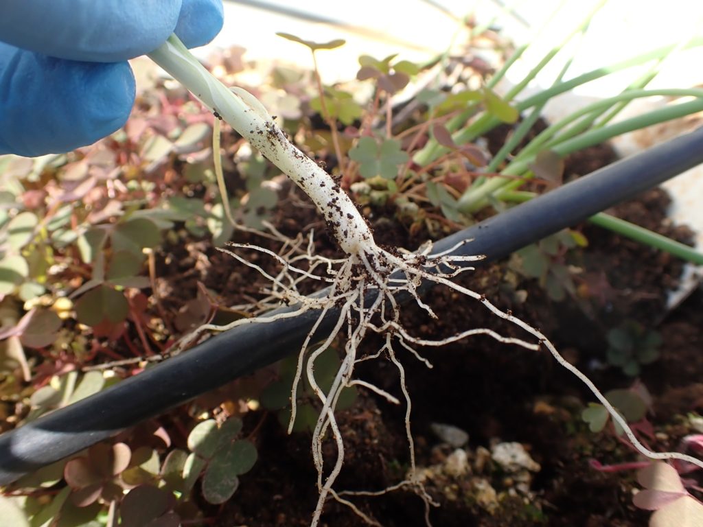 根はこの通り沢山.中央画像の苗は唯一コガネムシの被害を受けたと思われるものだが、回復してきている.苗は50近く得られた.