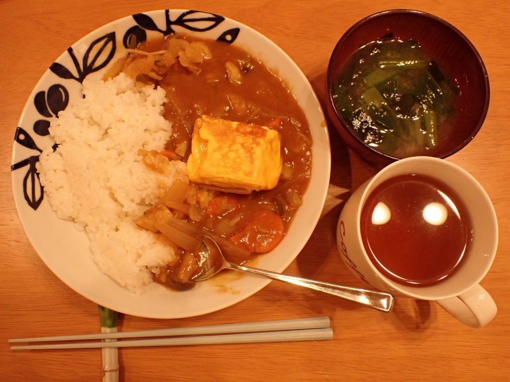 お肉を切らしていたので玉子焼きで代用.