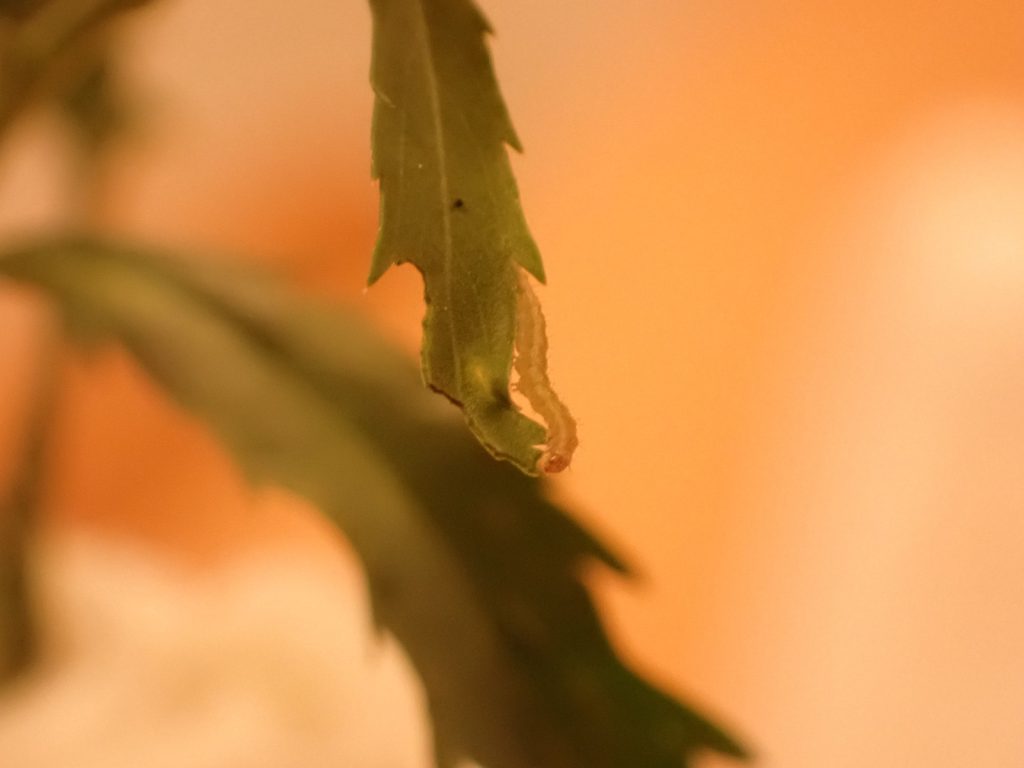 2025/05/27 孵化した幼虫 2025/05/27昆虫モンシロチョウasahama モンシロチョウ? 残る卵は2つに減っている.減った卵の主だと思うけど、モンシロにしてはちょっと細長い?マメグンバイナズナの葉を熱心に齧っている.