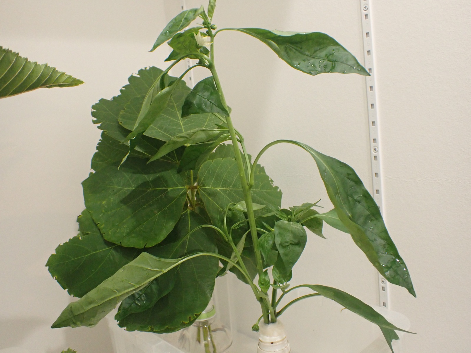 2025/07/26 ポインセチア挿し木 2025/07/26植物ポインセチアasahama プレミアムレッドは鉢へ植え付け 水挿し1か月で根がある程度伸びた所で鉢に植え付けた. フローズンを新たに 枝を1つ切り取り、新たに水挿しにした.