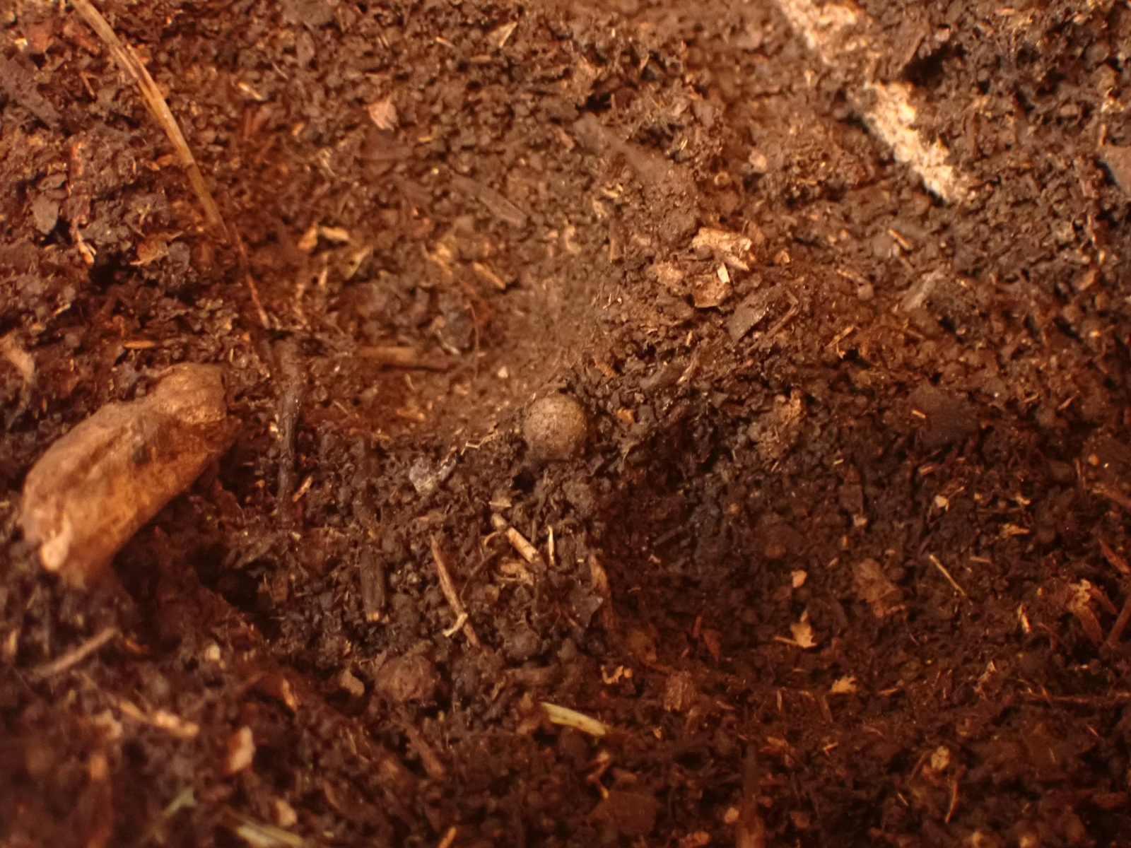2025/07/26 クロカナブン状況 2025/07/26昆虫クロカナブンasahama 産卵確認 マットを軽く掘った所で待望の卵発見. 目標数10を超える卵を発見した. ラップを、強い保湿になるよう施す. 親虫の飼育はこれで終了とする.行きつけの雑木林へ. 最後の繭玉も大穴が.