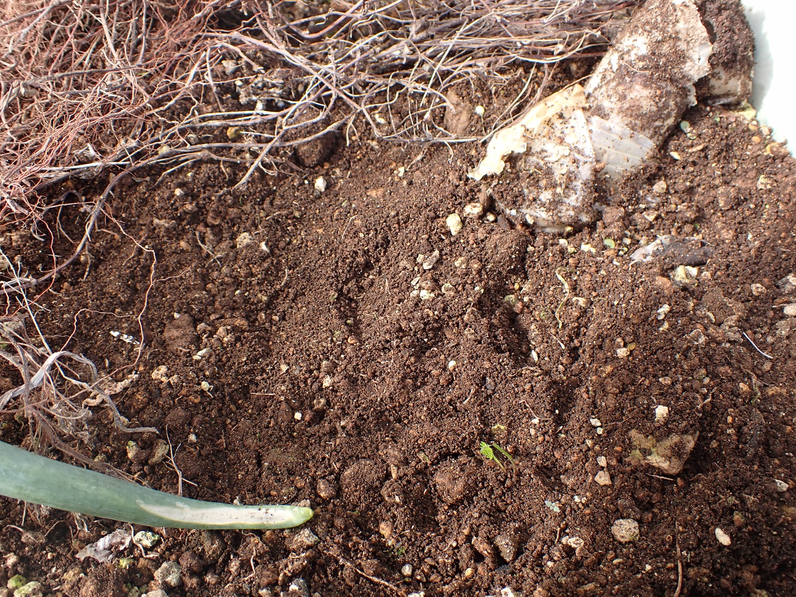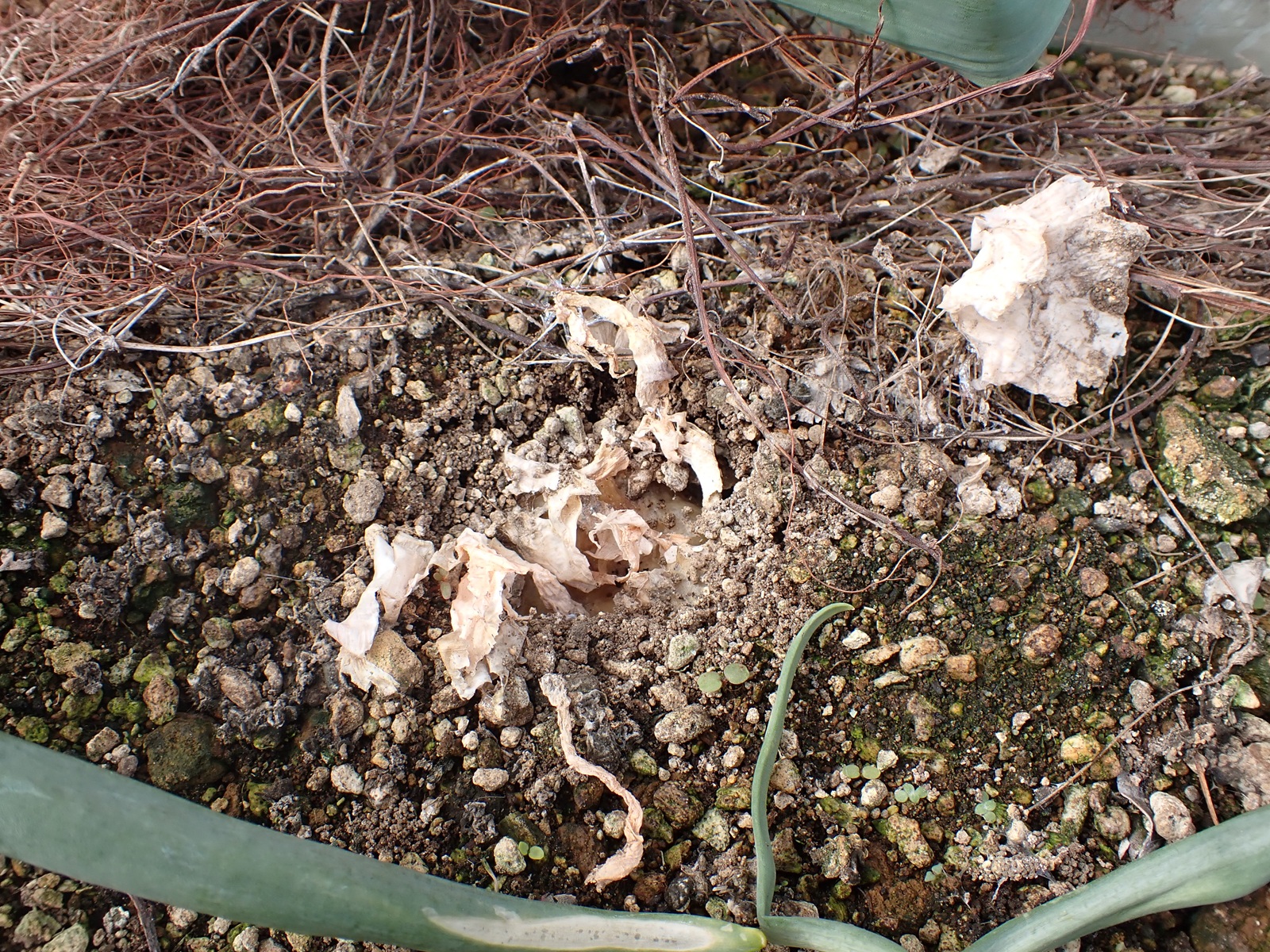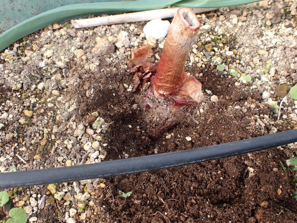 また植えると復活するかもしれない.とりあえずナメクジを避ける手段として、球を完全に土に埋める事にした.