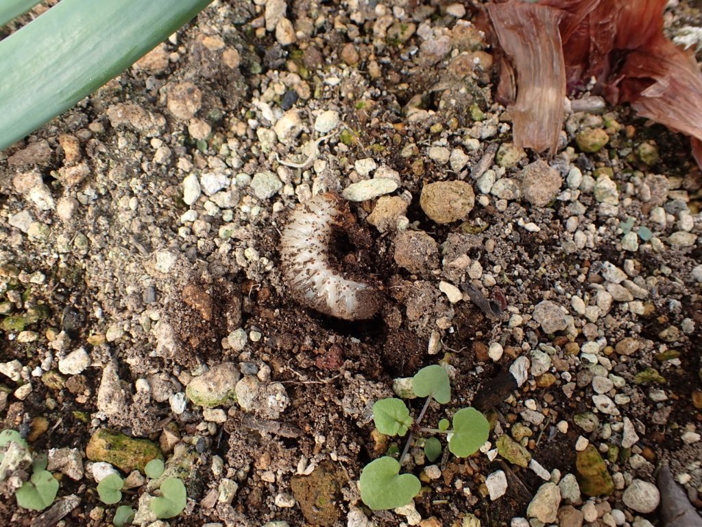 種が悪いと思われるムソナを除く泉州中高黄・赤玉の極みの苗は、コガネムシの邪魔を受ける事なくとても良く育っていた.