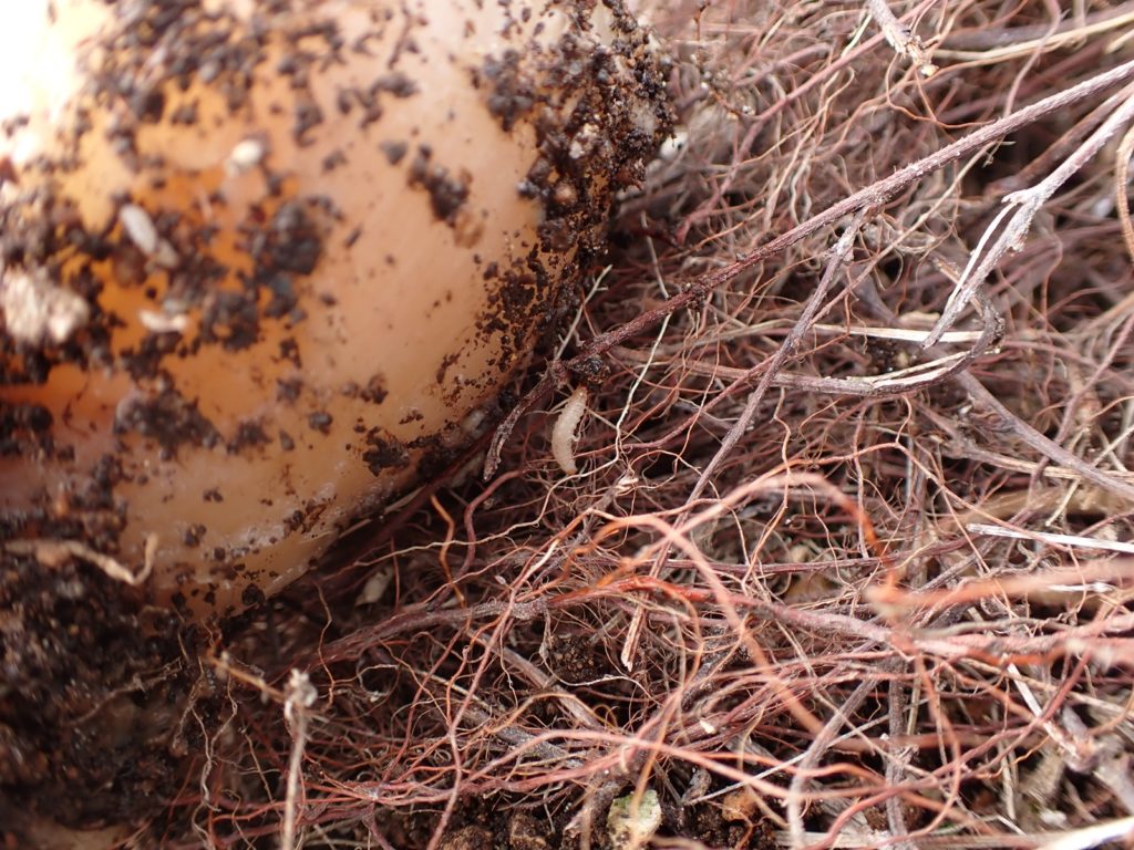根はこの通り沢山.中央画像の苗は唯一コガネムシの被害を受けたと思われるものだが、回復してきている.苗は50近く得られた.