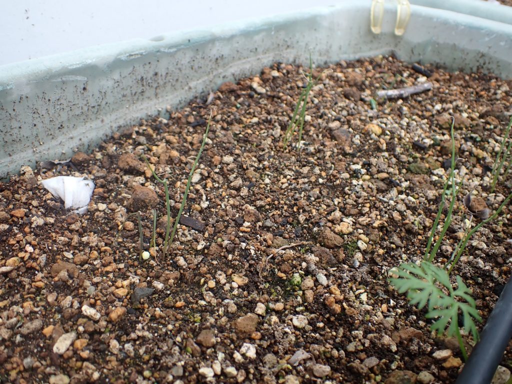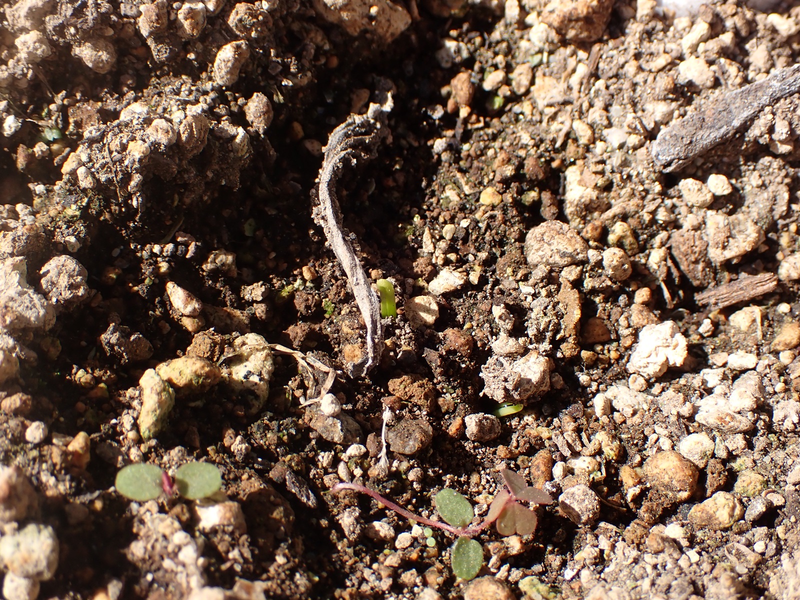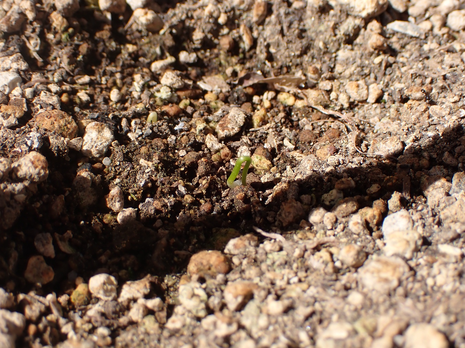 自家受粉で採れた種子はあまり使いたくなかったので、古い種子をもう一度引っ張り出して播種.一か所につき5粒ずつ、全50粒.
