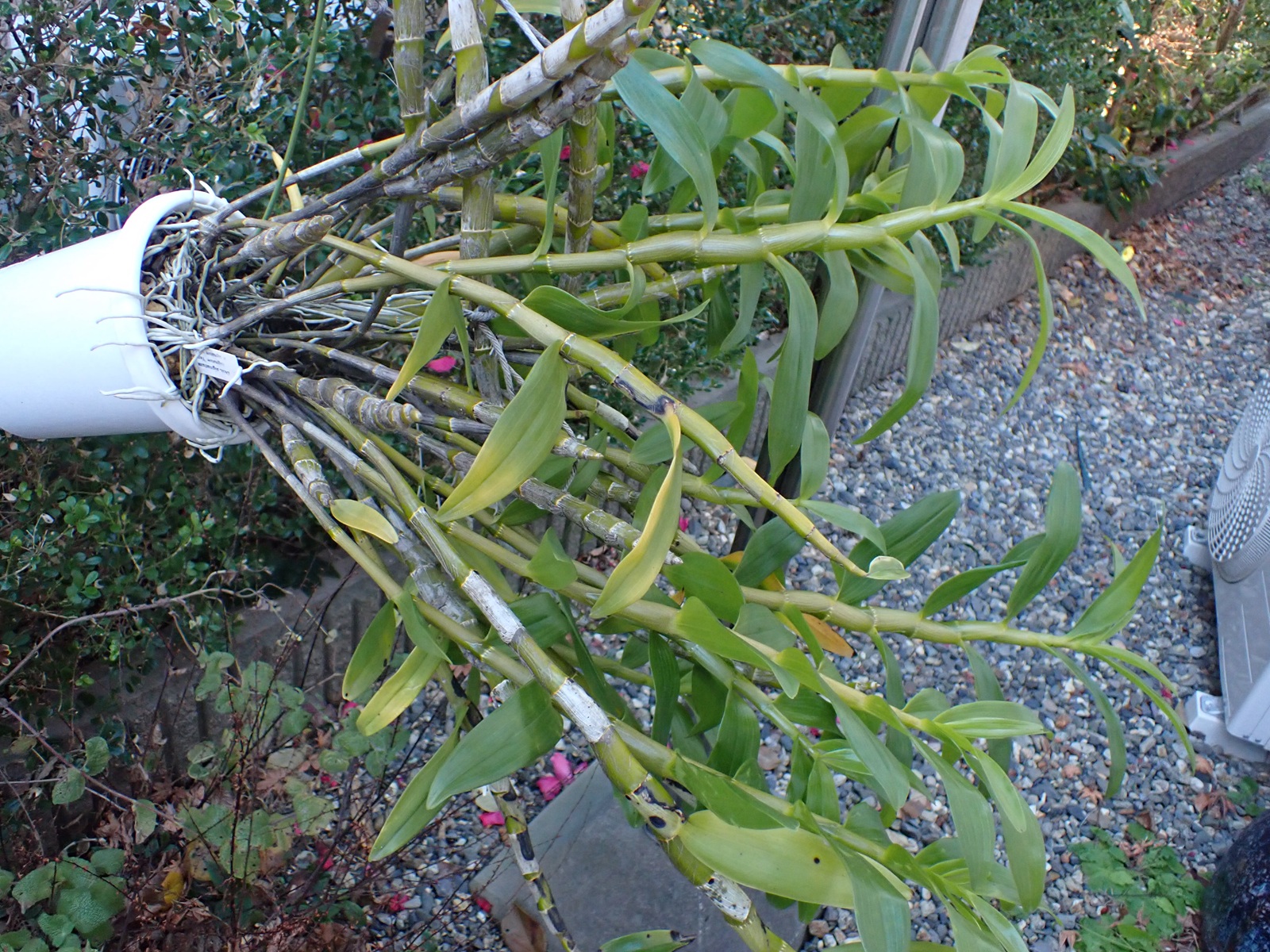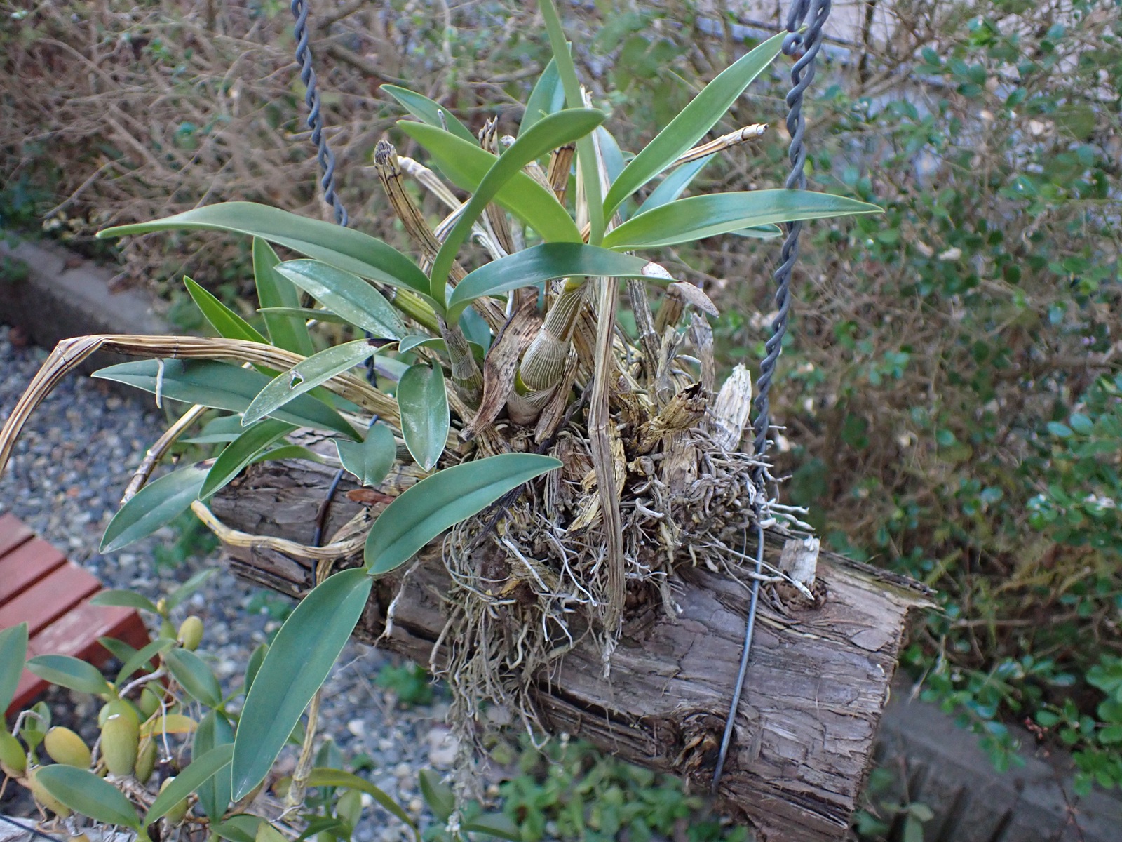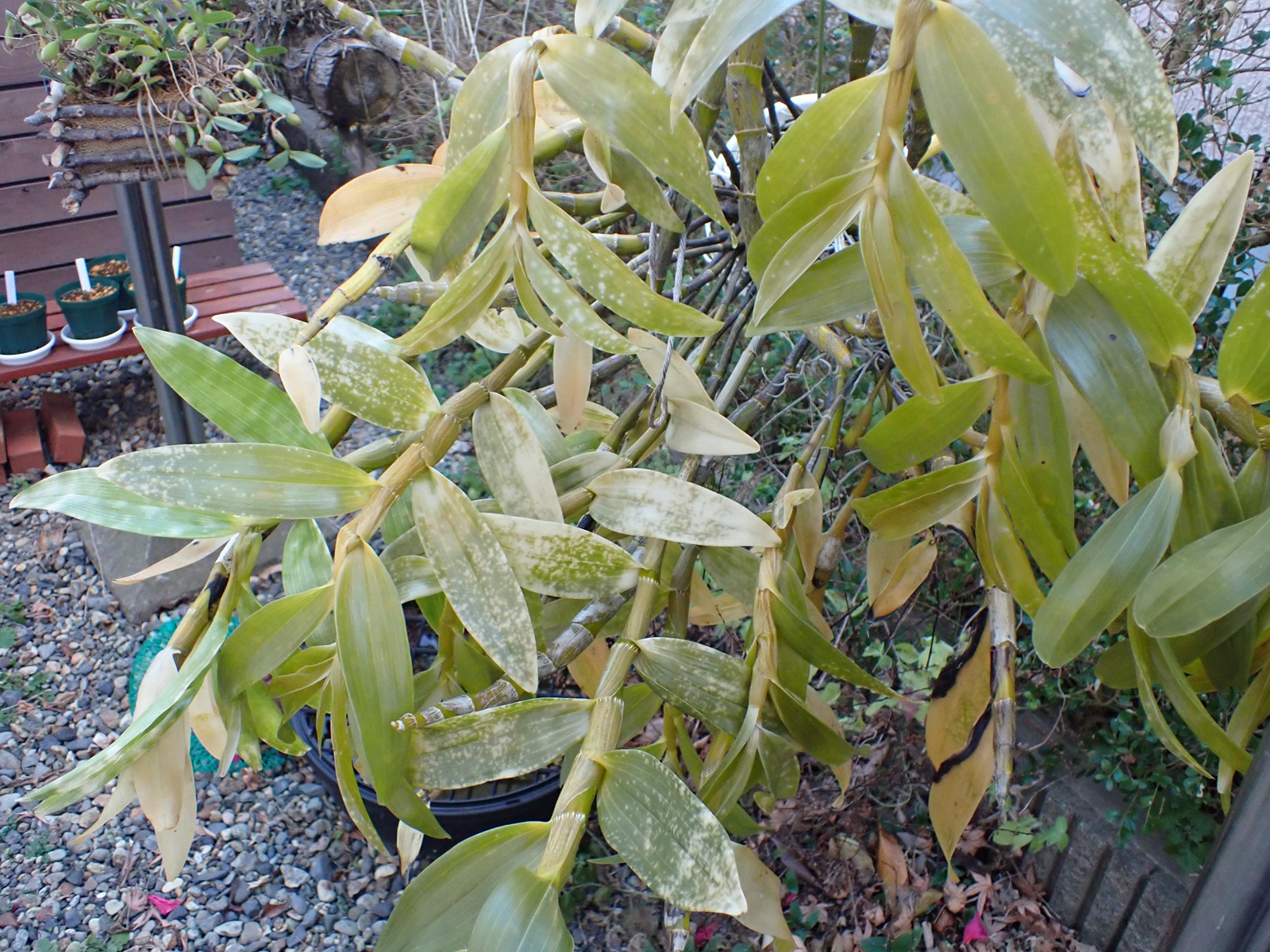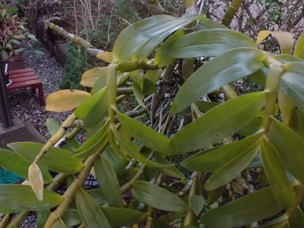 鉢はスリット5号ロング.用土の配合は赤玉2:鹿沼1:腐葉土2.マグァンプはいつもより少な目.腐葉土を使うのは当方では異例だけど、過去の失敗と生息環境を鑑みて使用に踏み切り、用土はいつになく黒々となった.スリット鉢における用土の土こぼれ対策として、底の方にビニル袋を作業が終わるまでぴったりはめておく(それでも少しこぼれるけど、しない場合より発生量を大きく抑えられる.こぼれた分は鉢の上にまた足す).