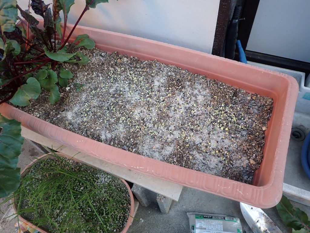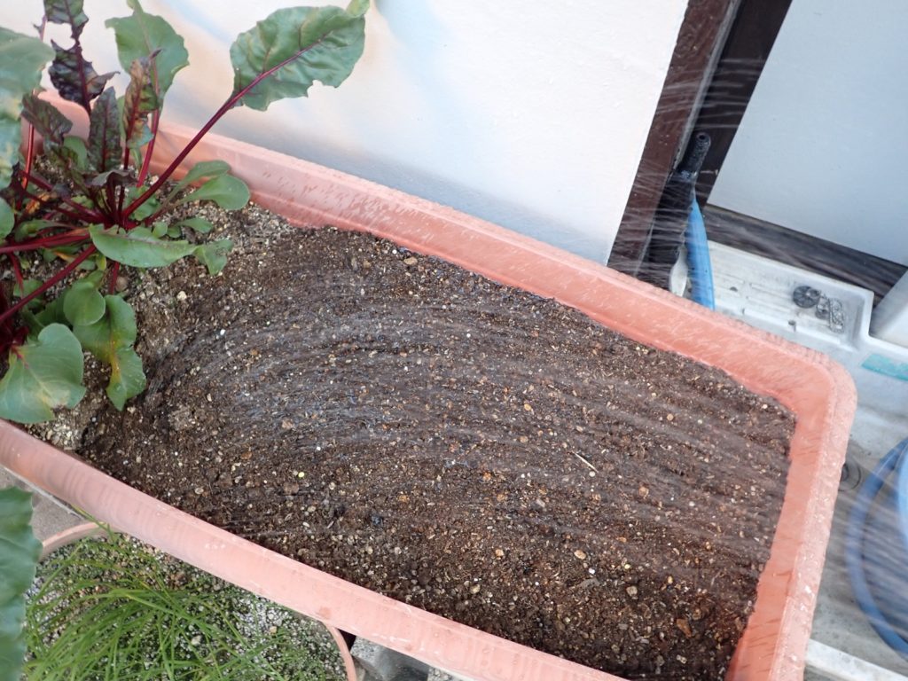 発芽率が読めないので、25粒全ての種子を蒔いた.水をたっぷり与えて、置き場所は庭で最も日が当たらない北側とした.