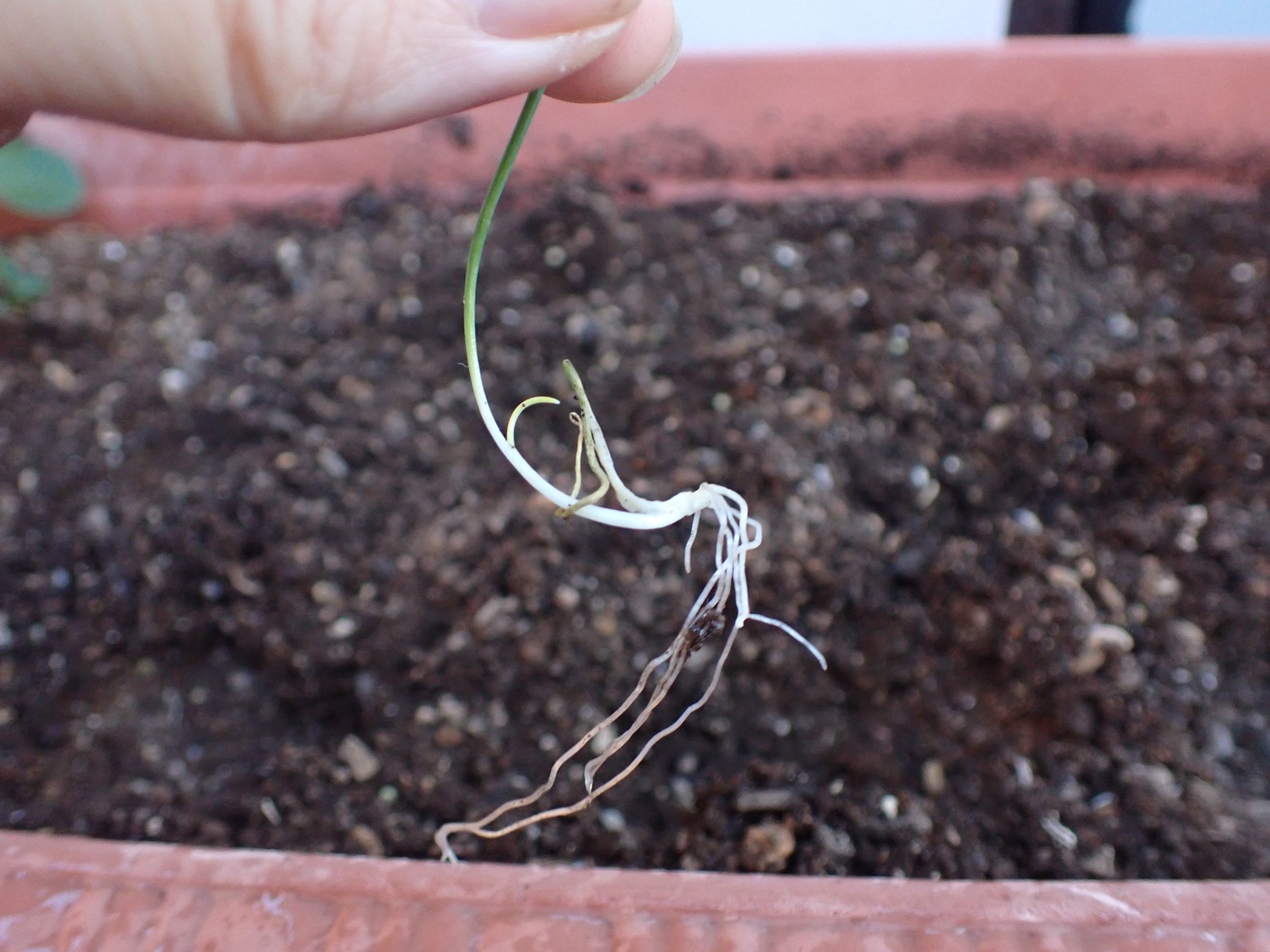蒔く前に種の大きさ、重さを計測.翼を含めると長い方で2cm少々、短い方で1cm少々.翼なしだとそれぞれ1cm、0.6cm程.形はアカマツやクロマツよりもごつく三角な印象.重さは全25粒(翼なし)で0.6g、1粒辺り0.024g程度.ちなみに全ての種子で水に沈まなかった.