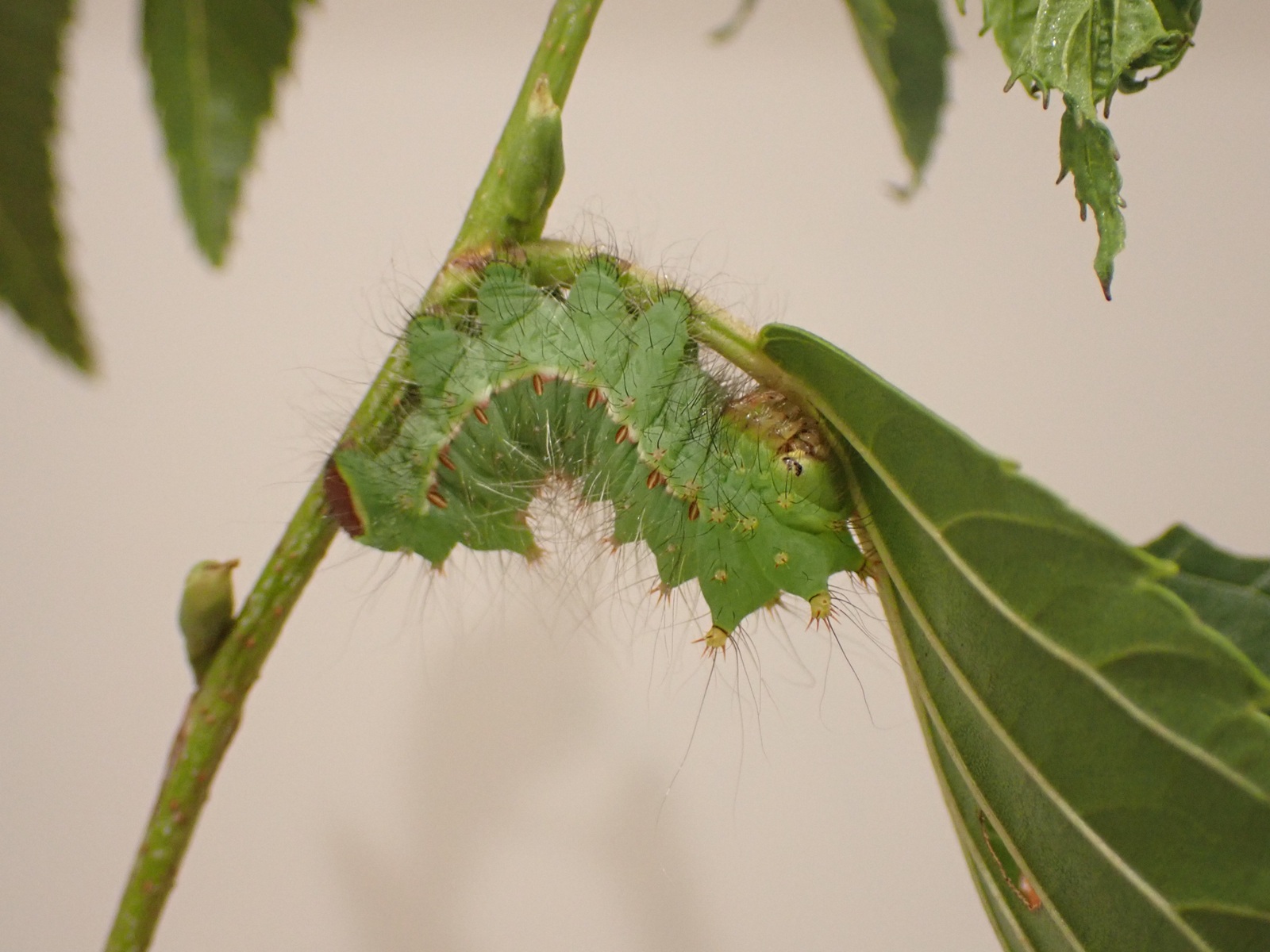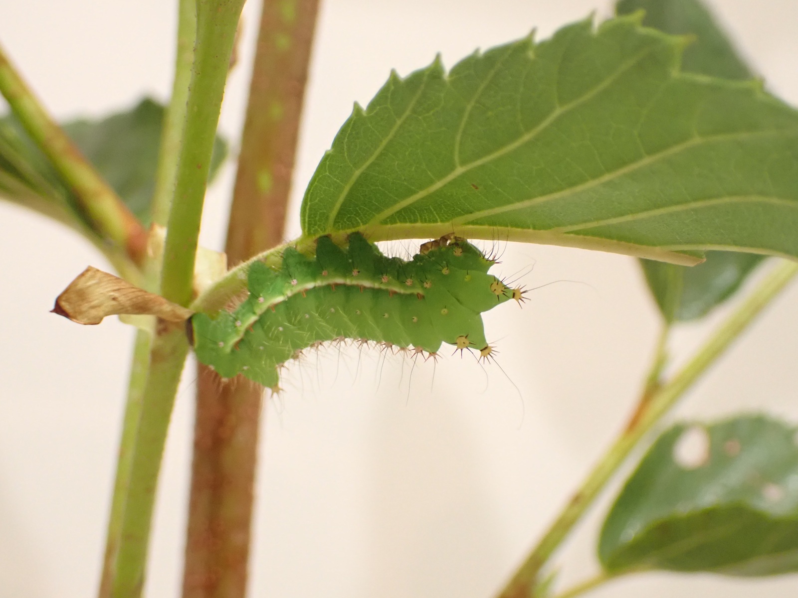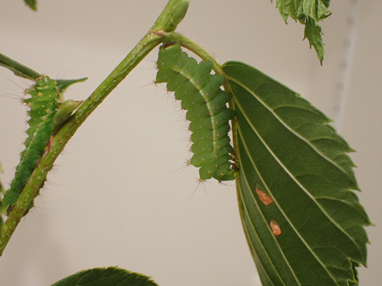 2025/08/29 オナガミズアオ成長中 2025/08/29昆虫オナガミズアオasahama 2齢へ脱皮 10頭全員脱皮.この時期としては順調な滑り出し.葉がくたびれてきたのでそろそろ枝補充が必要かな.