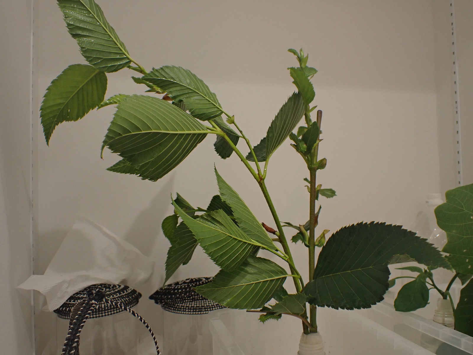 2025/07/30 オナガミズアオ状況 2025/07/30昆虫オナガミズアオasahama 朝-枝補充 5齢が現れてそろそろ1週間 幼虫の偏食志向(若葉は食べない)やボトルに入る枝太さの制限で、ロスする葉は少なくないが致し方ない. 夜-上がり個体出現 2頭が葉を食べず佇んでいたので営繭ケースへ移動.