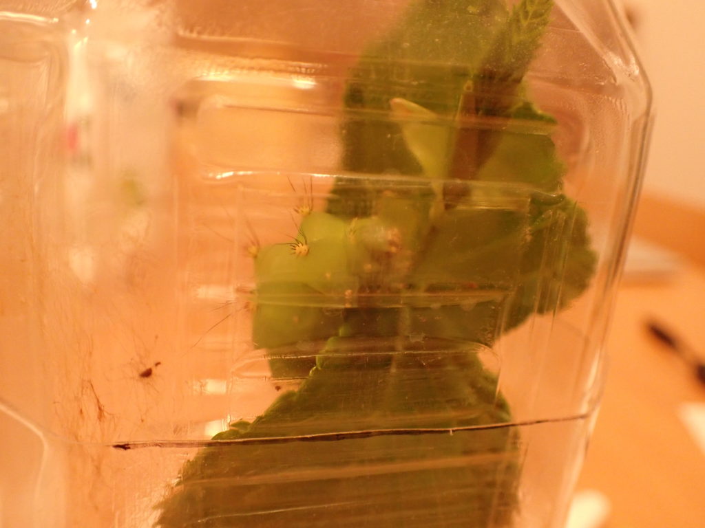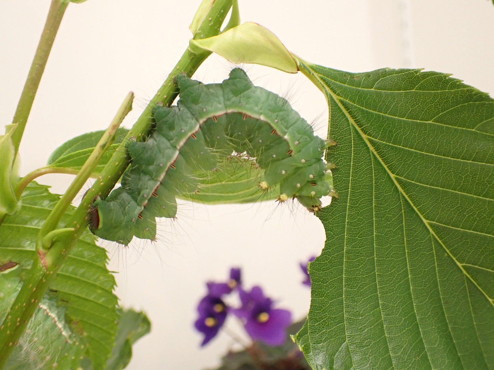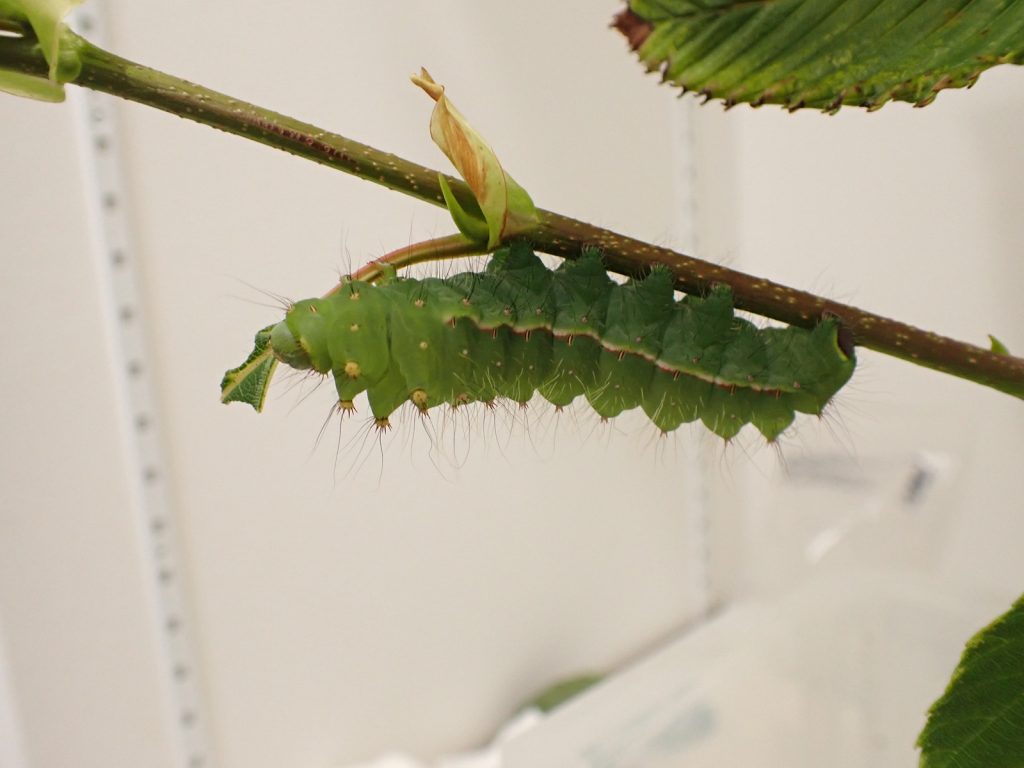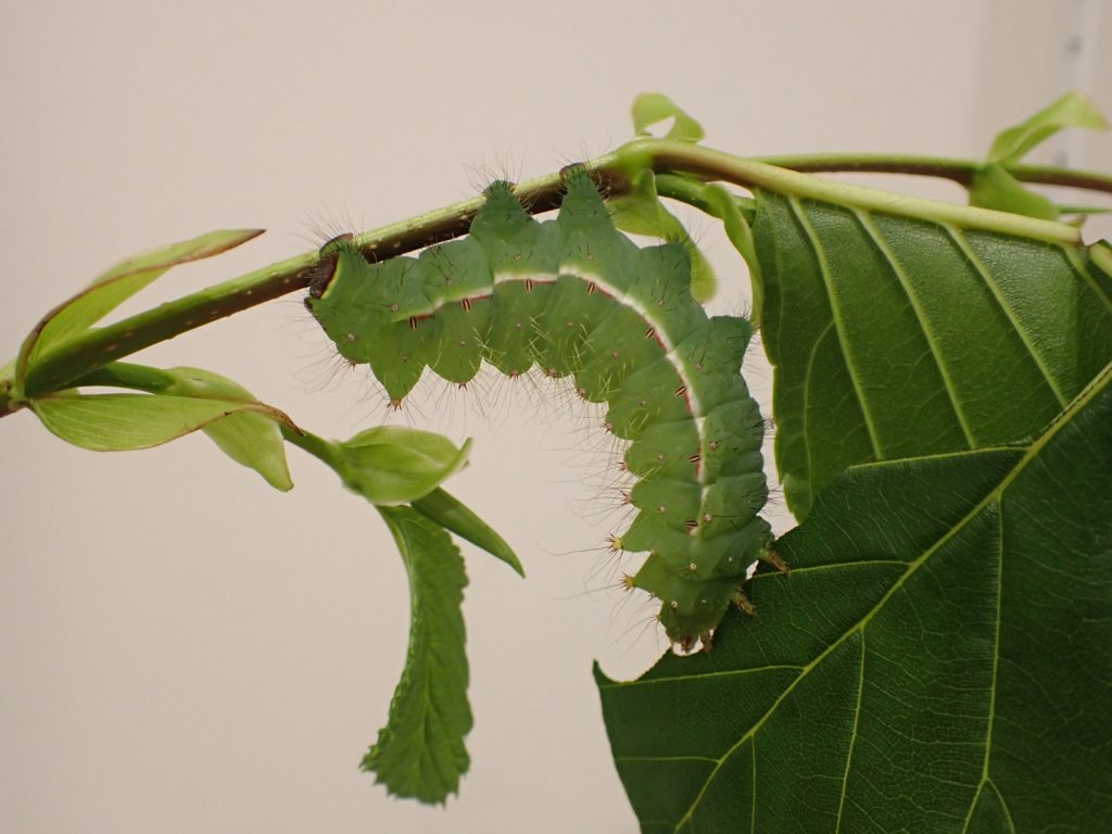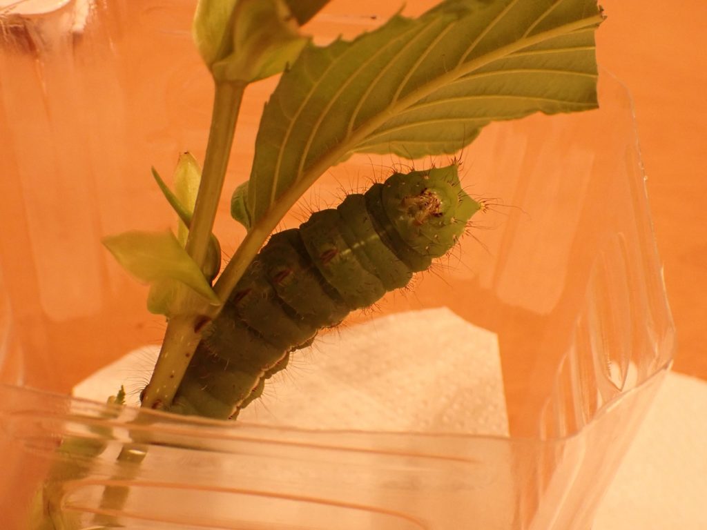 2025/06/13 オナガミズアオ全員上がり 2025/06/13昆虫オナガミズアオasahama 朝 6:07 7:26 朝、食べられる葉の無い枝先で佇み、イレギュラーなタイミングで上がりかと思われたが、その後移動し食事を再開. 夜 枝先付近で、かつ傍の葉を食べずに佇んでいたので上がりと認定.蛹化ケースへ収容となった.