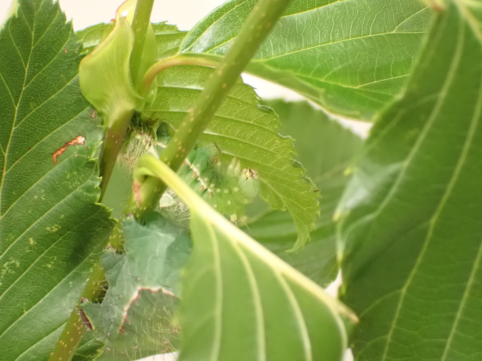 2025/06/08 オナガミズアオ状況 2025/06/08昆虫オナガミズアオasahama そろそろ上がりの頃かな 枝調達作業の終わりが近そう.ワンダリングによる逃亡防止の為、日没後の確認もせねば.