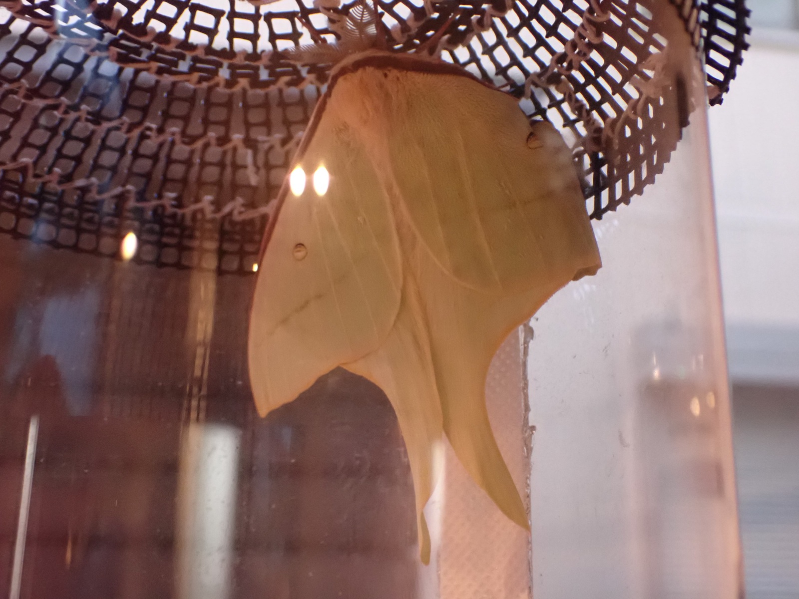 2025/06/27 オナガミズアオNo.1羽化すれど 2025/06/27昆虫オナガミズアオasahama 羽化不全 雄.右前翅が上手く伸びなかった模様.こうなった経緯を見たかった.ひとまずは外に出さずキープしておくことにしよう. 2025/07/10 追記 肢が弱り、翅を動かすのがやっととなり、そしてこの日、刺激してもほぼ動かなくなった.成虫として13日程の命だった.