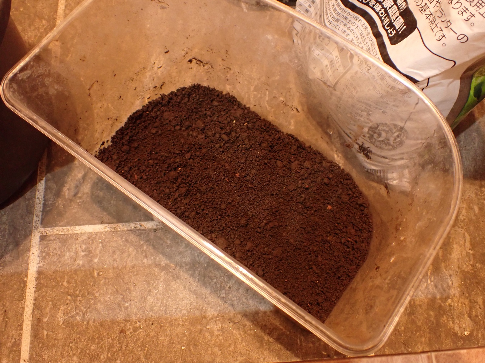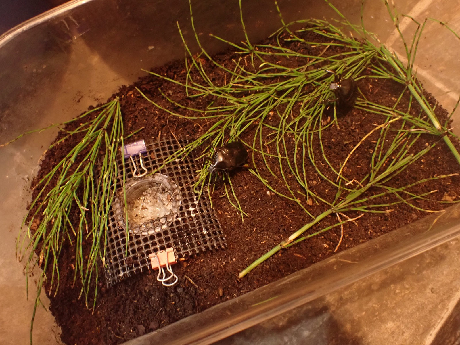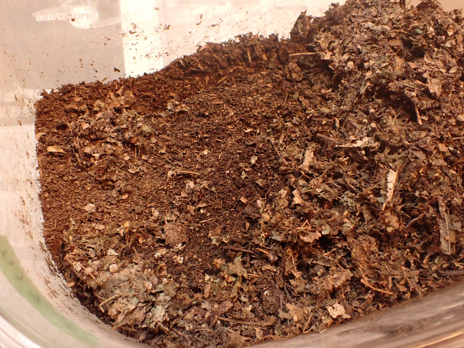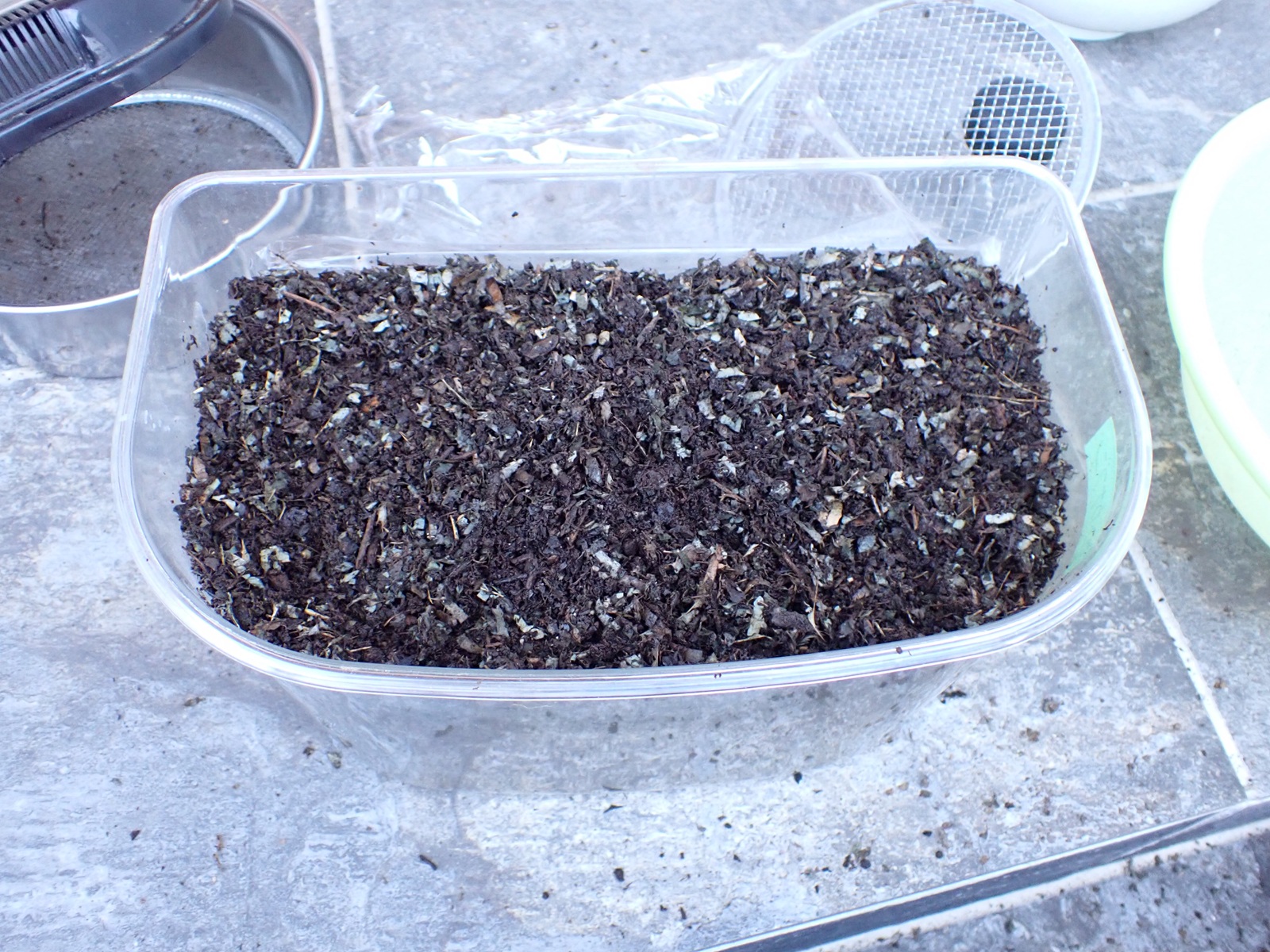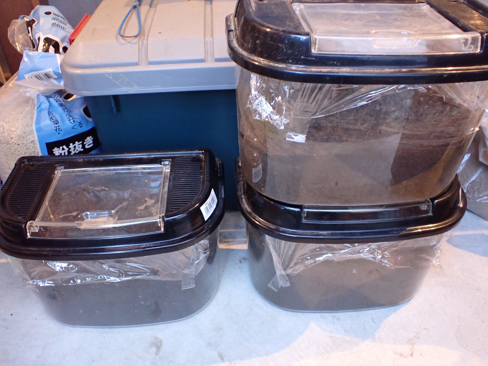 カナブンに続き、新しい腐葉土(葛由来+購入)を導入.保湿を緩めて蓋を閉じ作業完了.
