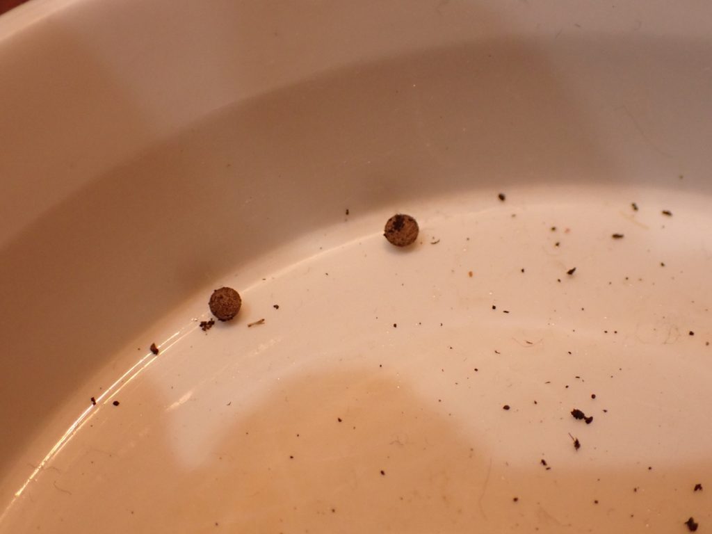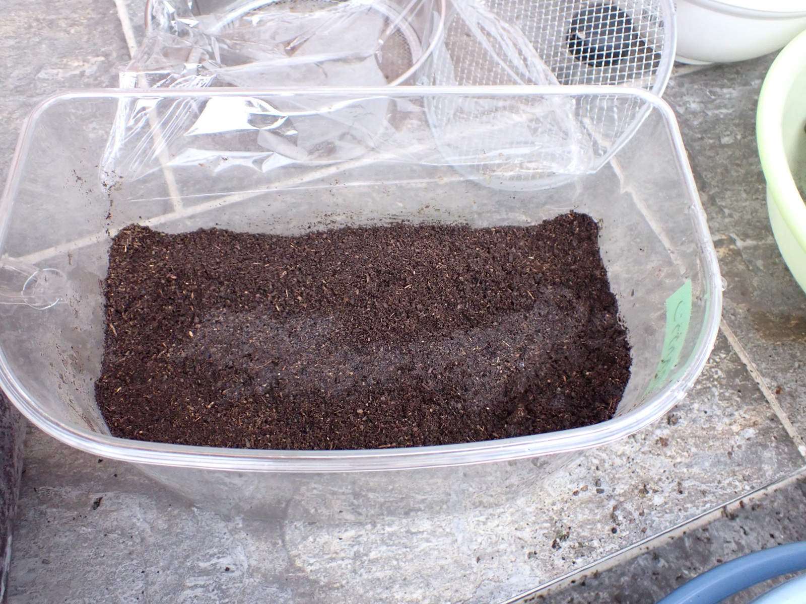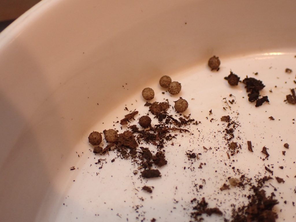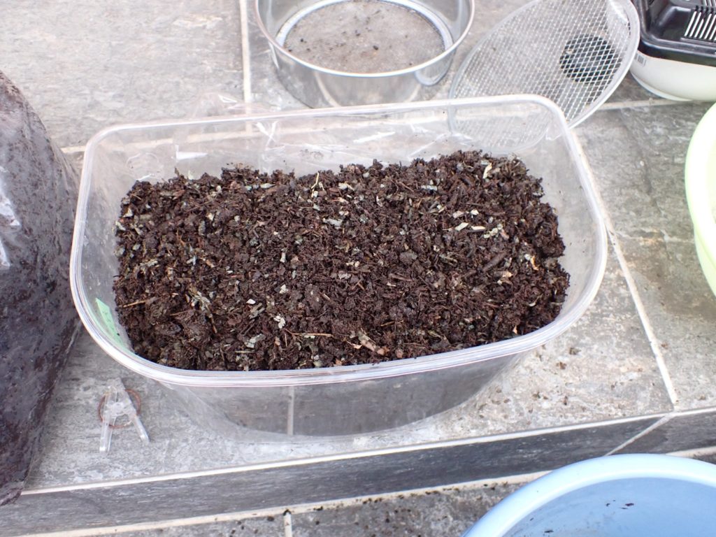 マットに加湿.カナブン同様ふるい分けした糞の山はこの時点では全てケースに戻して作業終了.