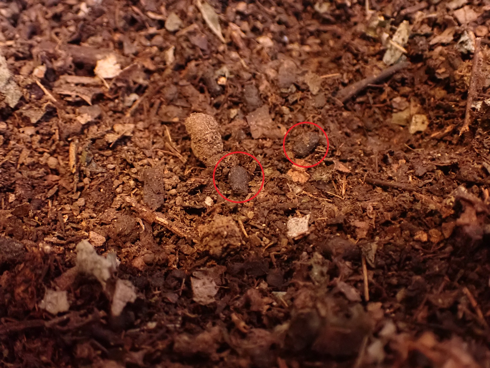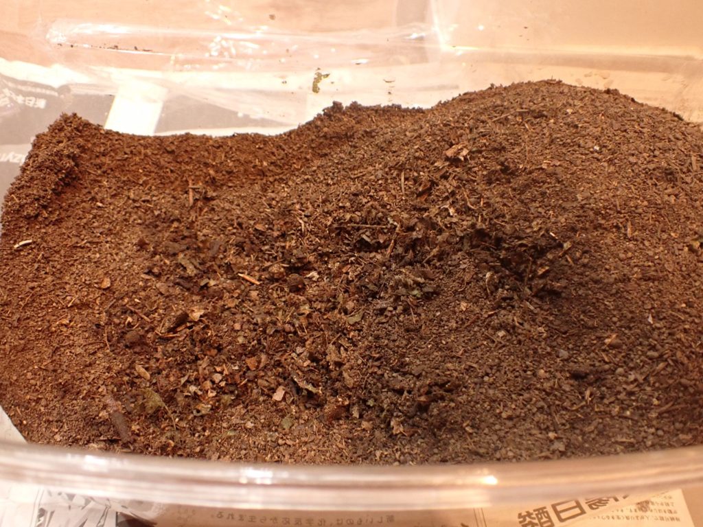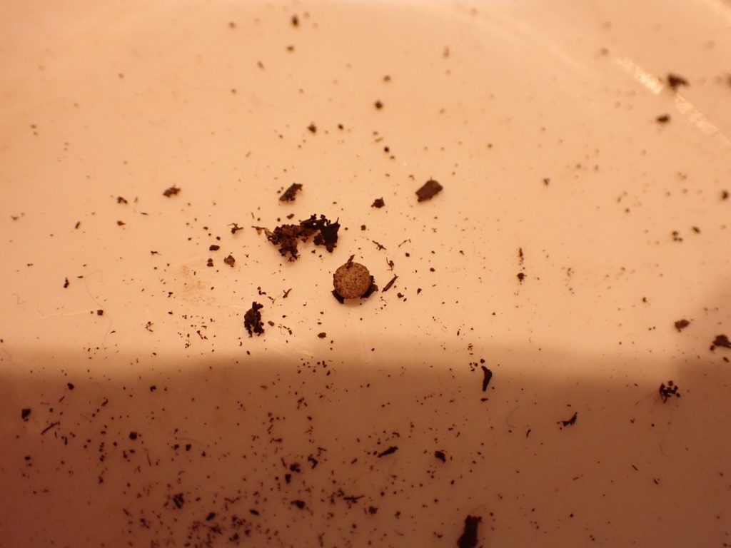 篩でよけた先代の糞の山の中に幼虫が複数紛れていた.今回、糞を捨てる事は見送りケースに全部戻した.
