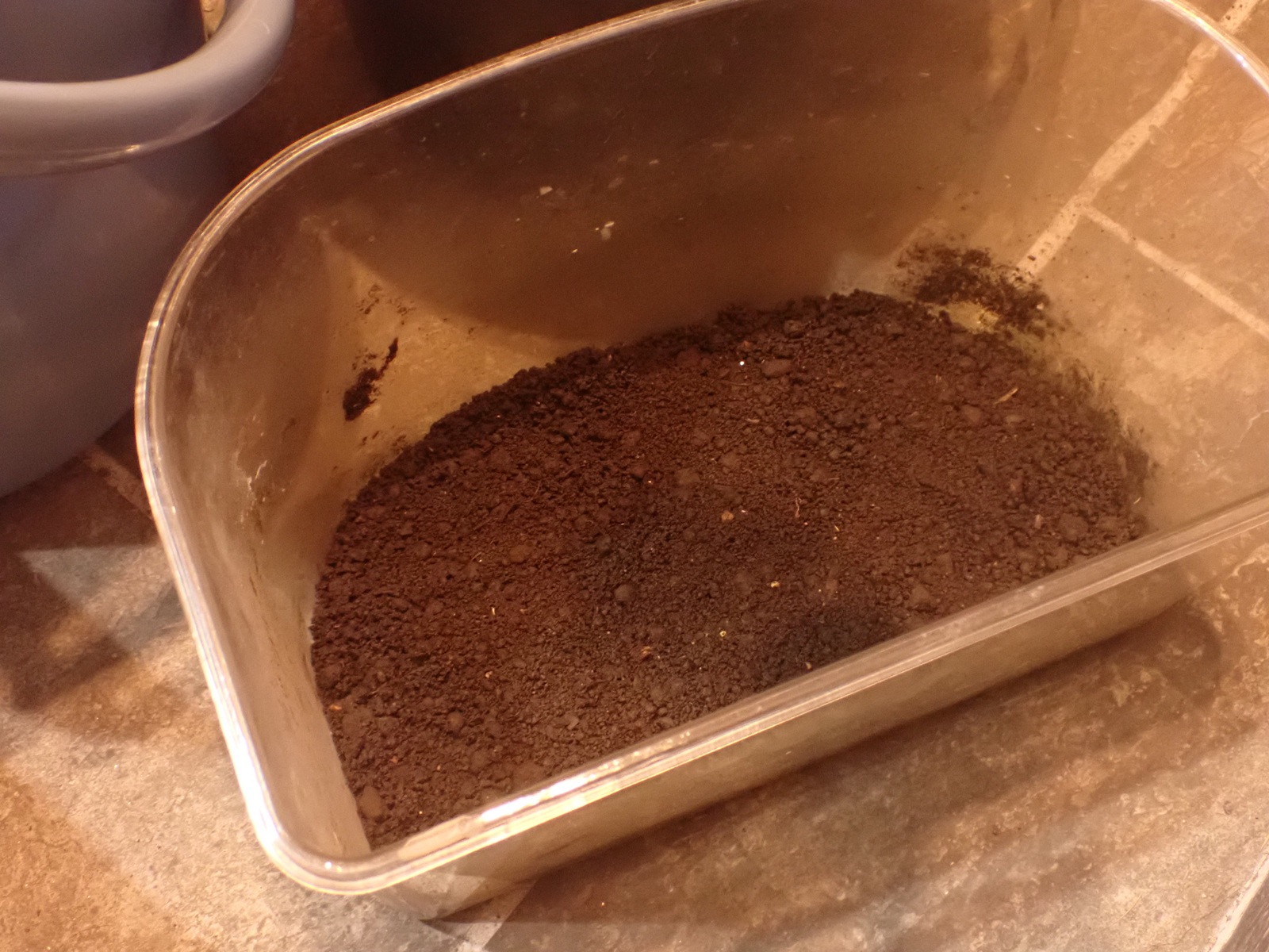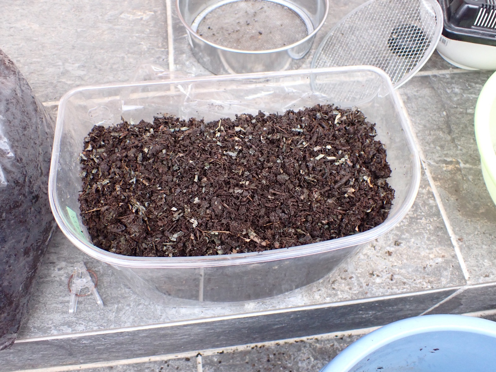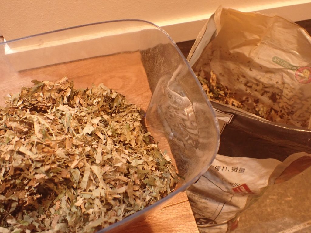 ふるいでなるべく糞を除き、2握り分の新たなマットを足して蓋を閉じる.