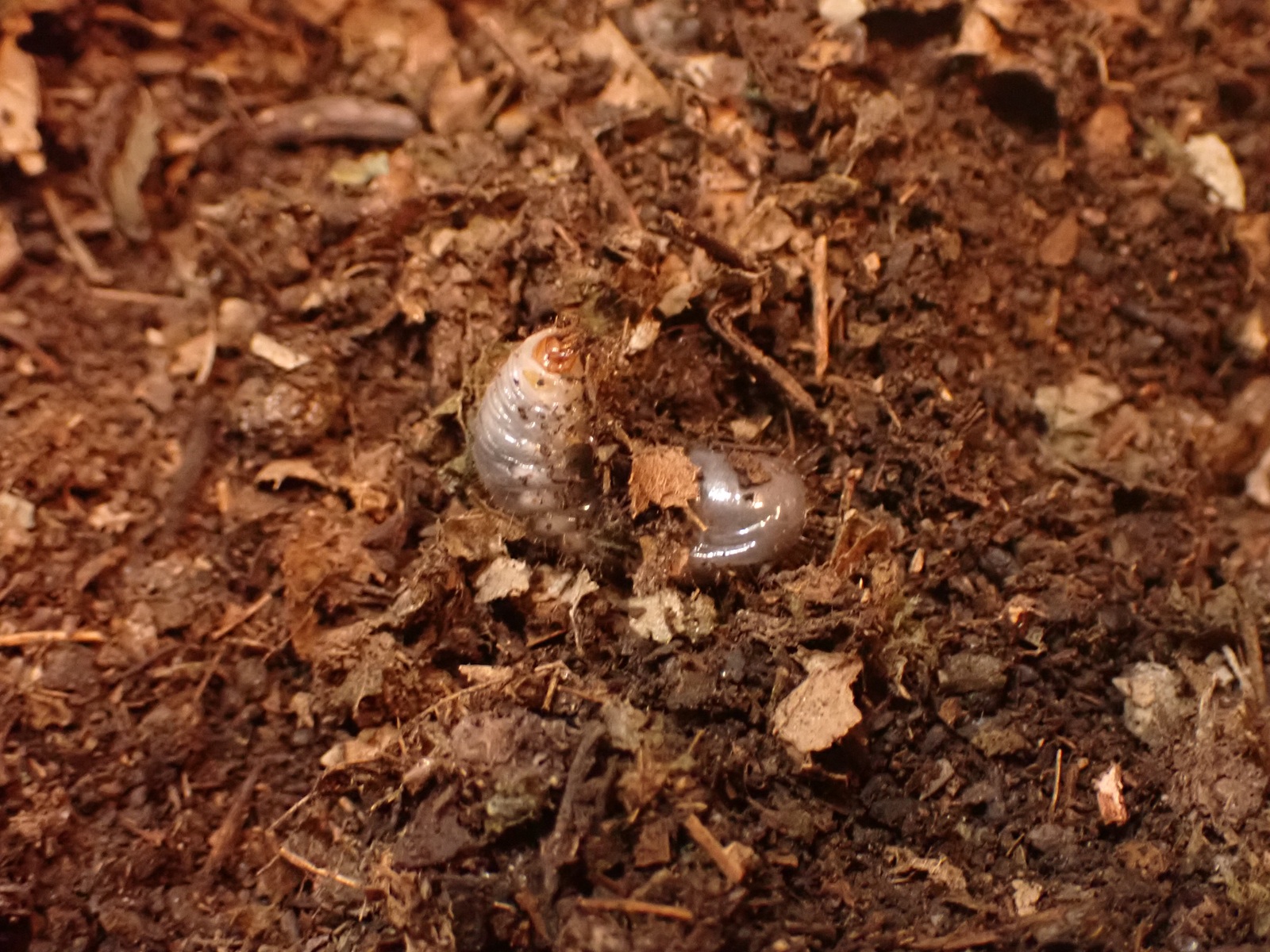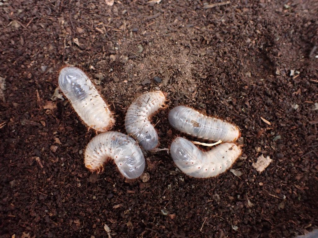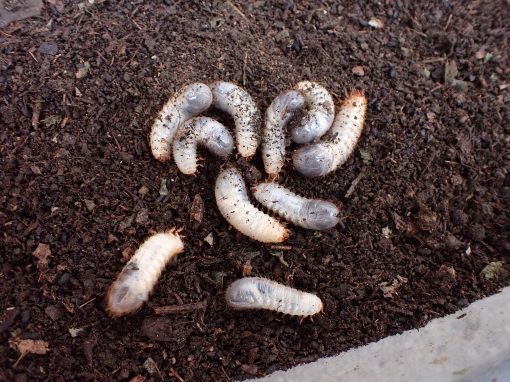 幼虫は10頭.これは前回確認時と同じである.カナブンと違いこちらは1頭も落ちていない.