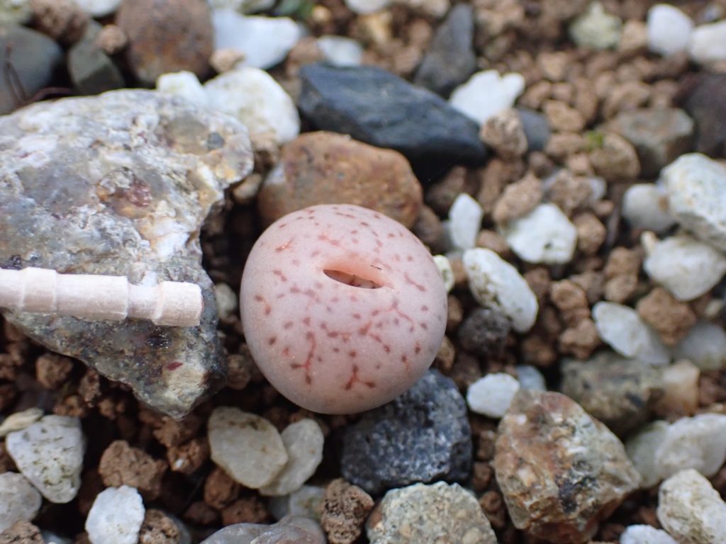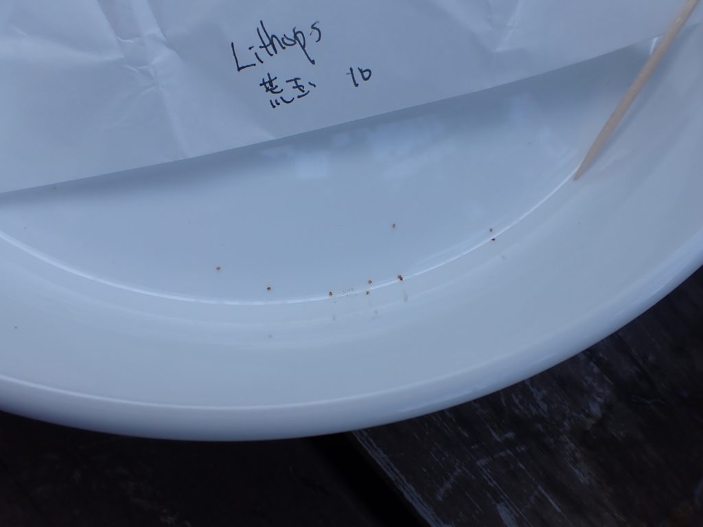 作業中、リトープス荒玉の苗の様子を覗き込んだら、3株中1株の横腹が、見覚えのある形にえぐり取られていた.ナメクジがココまで上がり込んできたに違いない.許すまじ.即ナメトールを施しておいた.夜になったら確認してみよう.