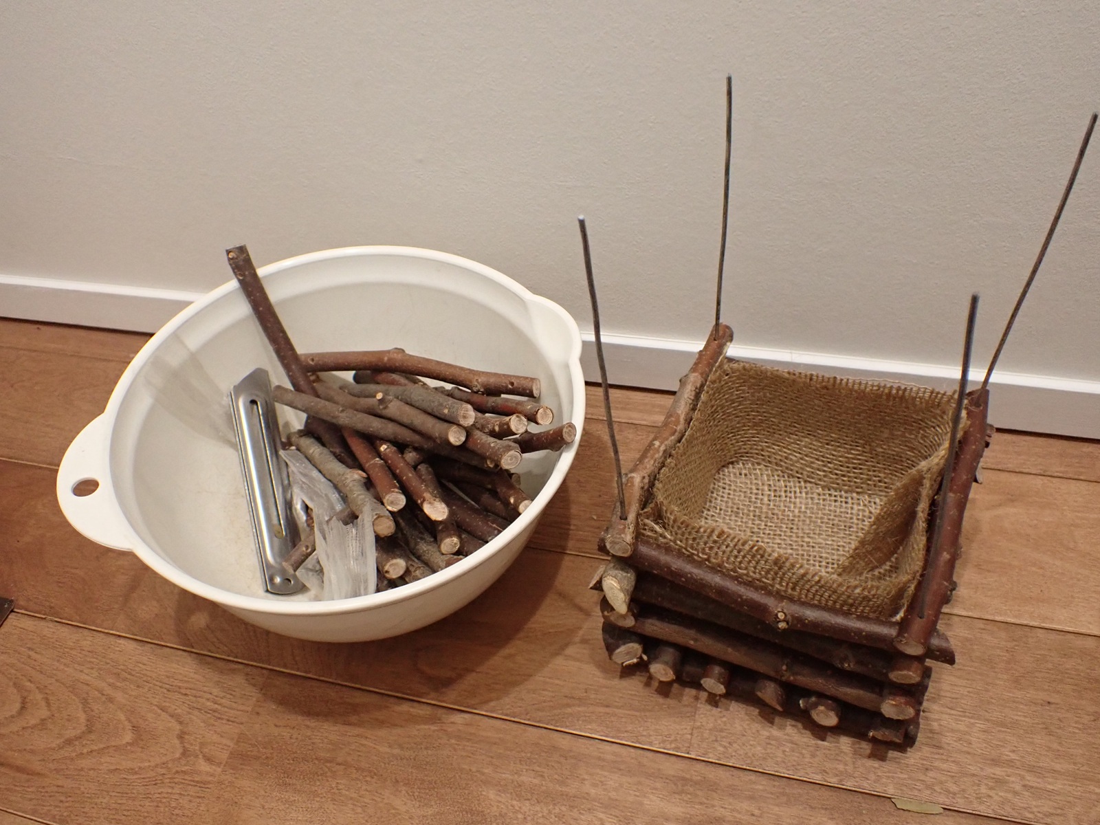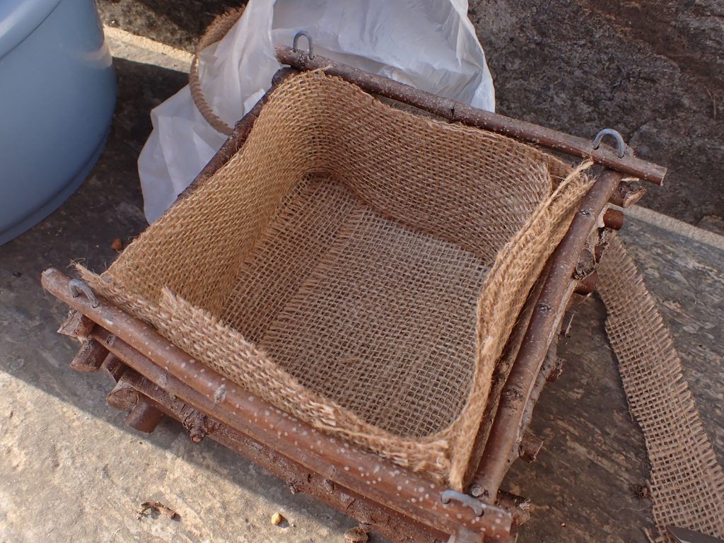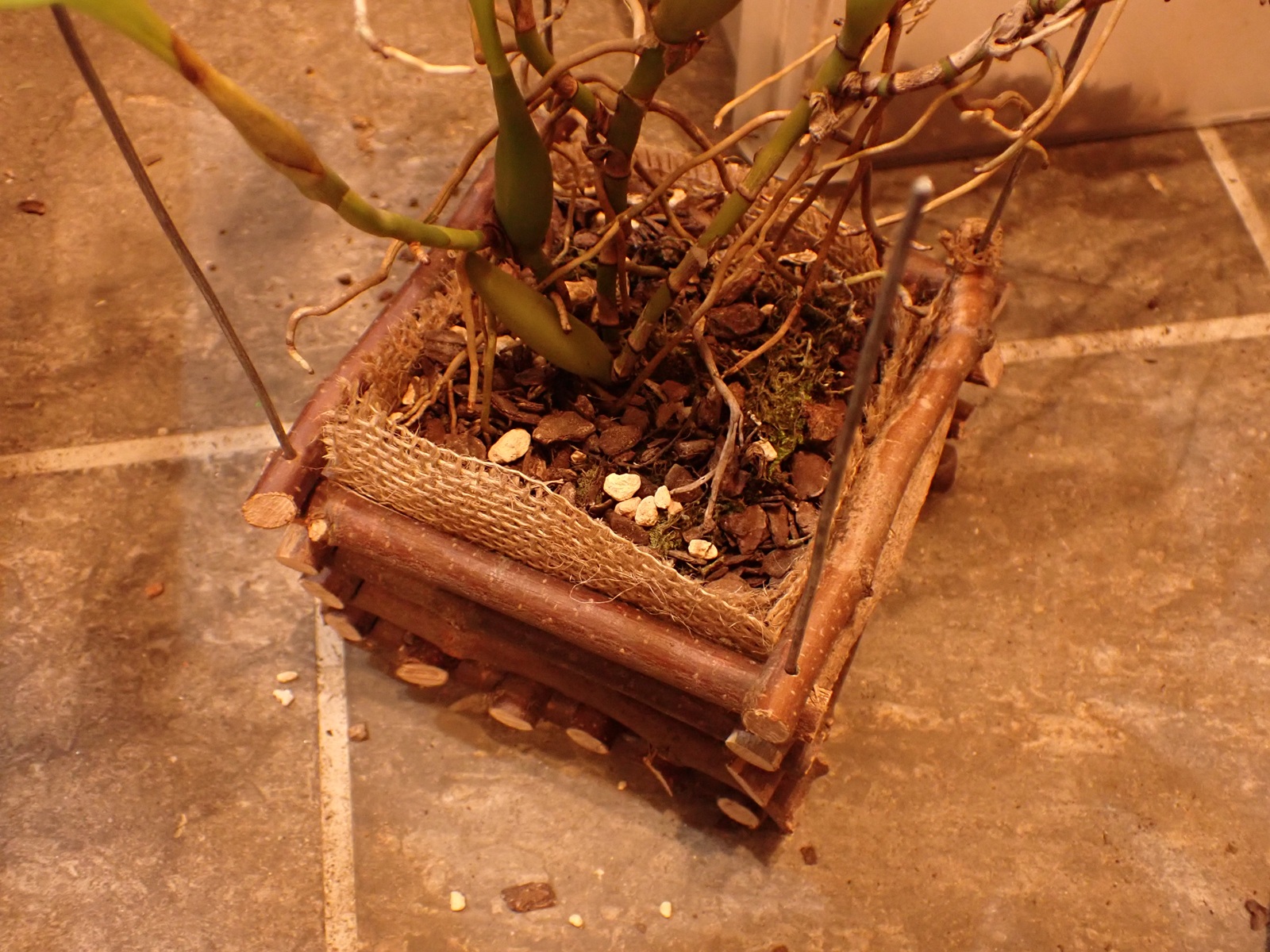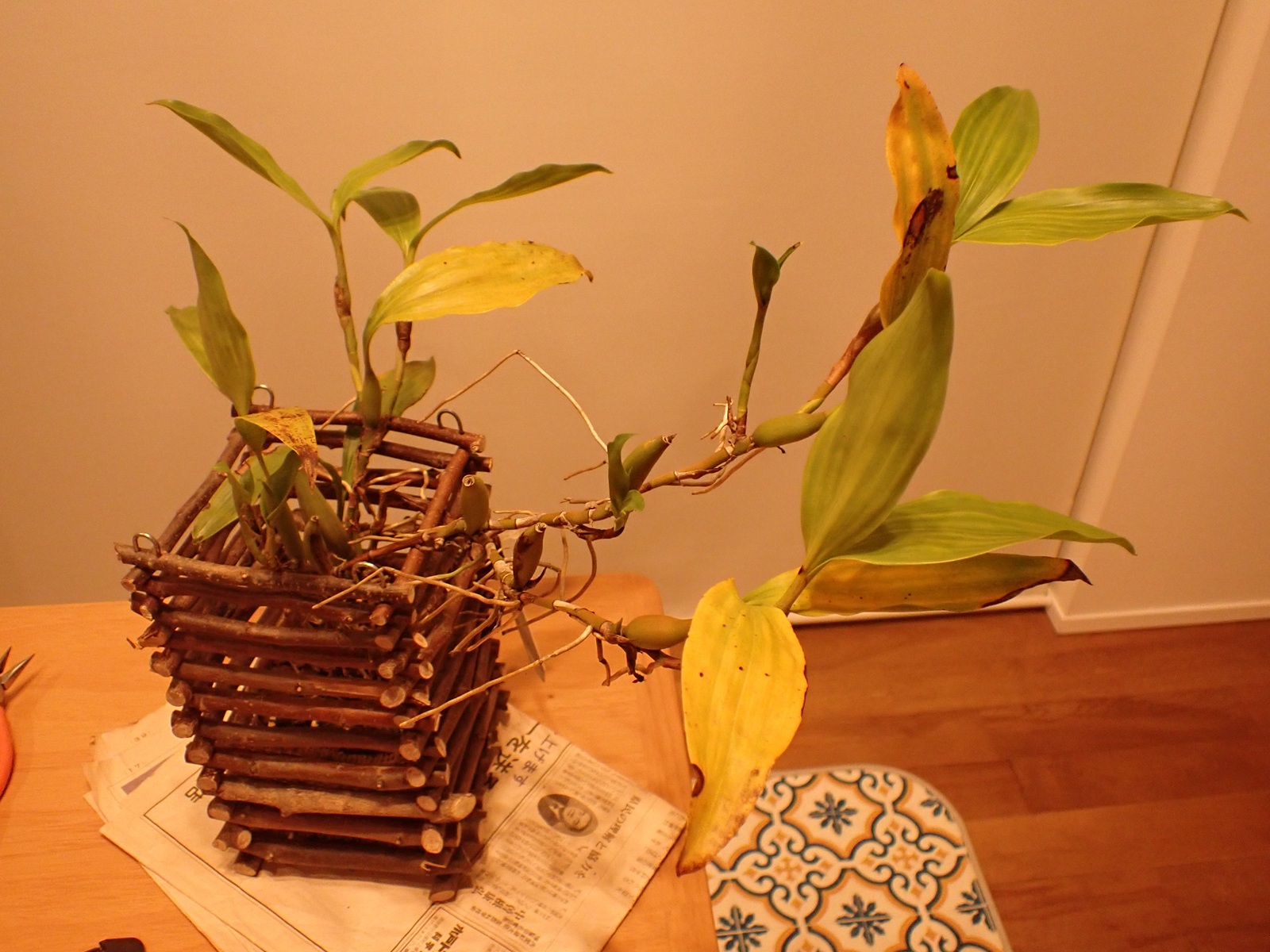 そこで、高さはそのままで、縦横を拡げた蘭バスケットを作る事にした.現在製作中.